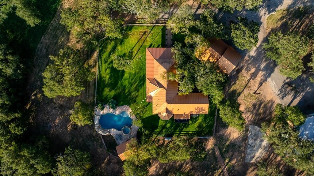 Discover this incredible 25+/- ac. property nestled in the heart of the Hill Country Wine trail. Just 8 miles from Fredericksburg, this location offers easy access to Austin and San Antonio. The residence features a 4,000 sqft home w/ 4 bdrms, 3.5 bath, wrap around porches, luxury pool w/ beautiful waterfall, fully equipped outdoor kitchen, cabana, and half bath w/ outdoor shower. Upgraded countertops and custom cabinetry throughout, 2 primary suites (1 lower level/ 1 upper level), large gameroom w/ balcony, wet bar, and wine fridge. 3-car garage w/ RV storage & separate large workshop. Additional amenities include a fully furnished tiny home, stock pond, whole property generator, half court basketball court, and about 570 ft of Pedernales River frontage. Beautifully manicured post oak & live oak trees, open native field, 80 gpm well & the property is completely perimeter fenced. This UNRESTRICTED & agriculturally exempt property, blends commercial potential with luxurious living. Entrance off of 290 offers amble possibilities for investors, wineries, or those seeking a premier quiet lifestyle in Texas Hill Country. Please note, there is more acreage available with commercial opportunity.