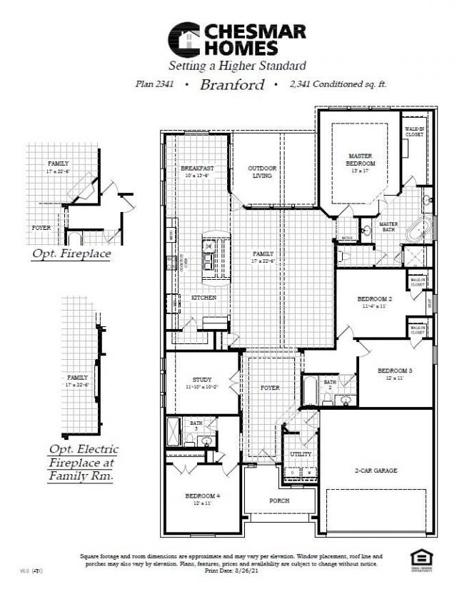 New Construction | 1-Story | 2,341 Sq Ft | 4 Beds | 3 Baths | Study | Available Fall 2026 | The Branford offers a well-balanced single-story layout designed for flexibility and everyday comfort. The foyer leads to a private front bedroom with a nearby full bathroom, creating a practical setup for guests or extended living. Further down, a dedicated study with French doors provides a quiet space for work or learning. Two additional secondary bedrooms, each with walk-in closets, share a nearby full bathroom with convenient hallway access. At the center of the home, a light-filled family room with vaulted ceilings connects seamlessly to the kitchen and casual dining area, creating an open and inviting space for gathering. The kitchen features an oversized center island, a walk-in pantry, and ample cabinet and counter space, supporting both function and flow. The dining area sits nearby, offering an easy transition between meals and daily living. The primary suite is tucked at the back of the home for added privacy and features tray ceilings along with double doors leading into the ensuite bath. The bathroom includes dual vanities, a soaking tub, a separate walk-in shower, and a spacious walk-in closet. A covered patio extends the living space outdoors, providing a comfortable area to relax or unwind. Visit our model and ask about current buyer incentives!