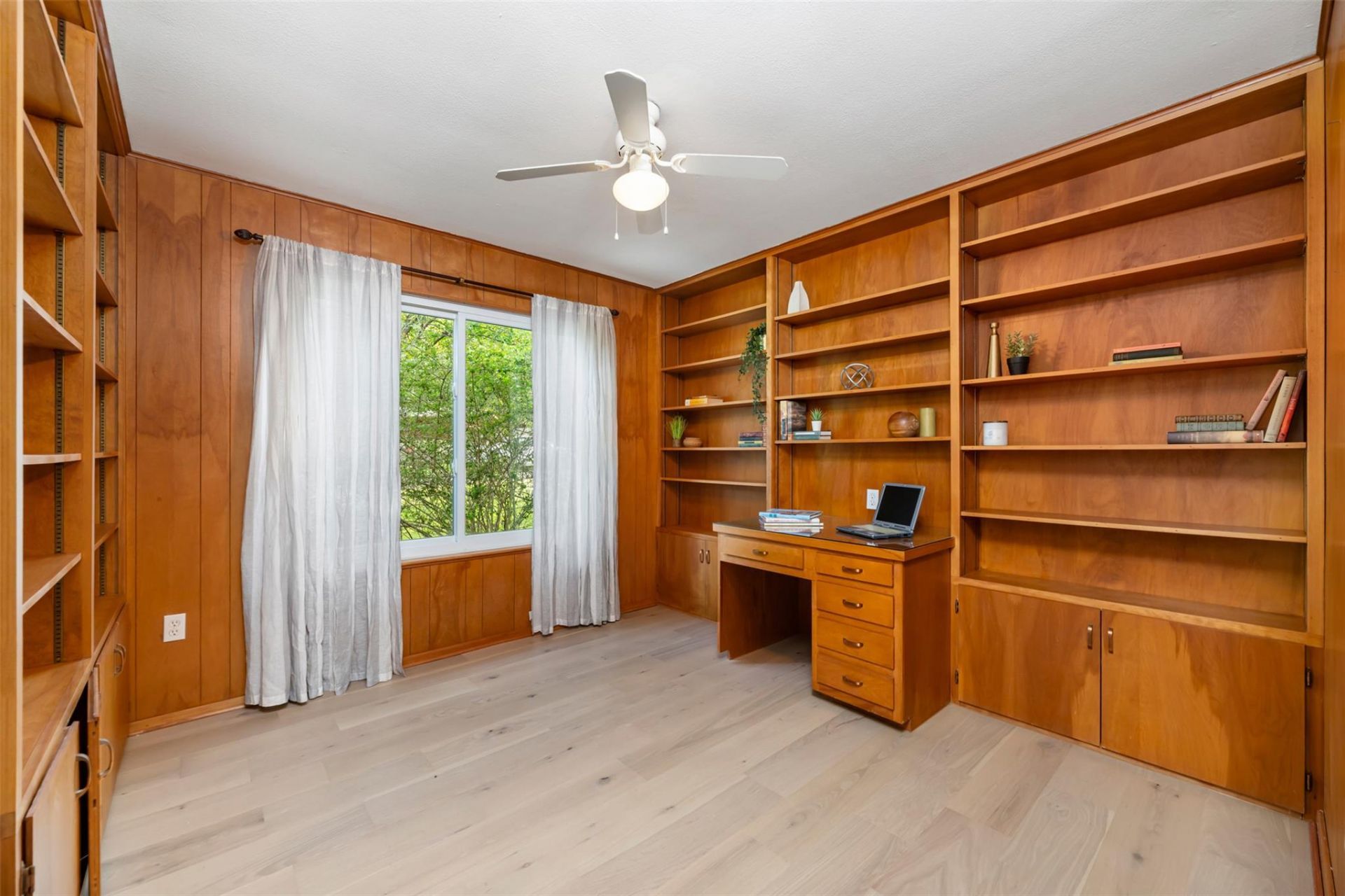 Thoughtfully renovated 1959 mid-century home by a long-time owner, set on a spacious corner lot in the heart of the Walnut Creek Neighborhood. This light-filled home blends timeless character with modern updates, including a new roof, new windows, updated flooring, fresh interior paint, new landscaping, a beautifully renovated kitchen and bath, and a 2025 HVAC system.Original built-ins add warmth and function throughout, including a dedicated office with custom shelving and desk, as well as thoughtfully designed kitchen workstations and dining cabinetry. The open floor plan offers flexible living with generous storage, multiple laundry location options for convenience, and a bonus flex/storage space behind the garage.Step outside to a backyard designed for gathering or relaxation?featuring a vintage mid-century brick barbecue oven perfect for wood-fired pizza nights, Texas BBQ, or cozy evenings by the fire. Mature trees and refreshed landscaping surround the home front and back, supported by a dedicated irrigation system.Located in the heart of the North Lamar International District and North Austin Tech Corridor, this home sits on an interior street within one of Austins oldest and most active neighborhood associations?often referred to as the Secret Garden of North Austin. Enjoy access to the Walnut Creek Urban Trail system, neighborhood events on the peninsula, and an easy commute roughly 3 miles to Austin FC Q2 Soccer Stadium, Cap Metro Light Rail, The Domain, and major employers including Samsung, Indeed, & Dell.