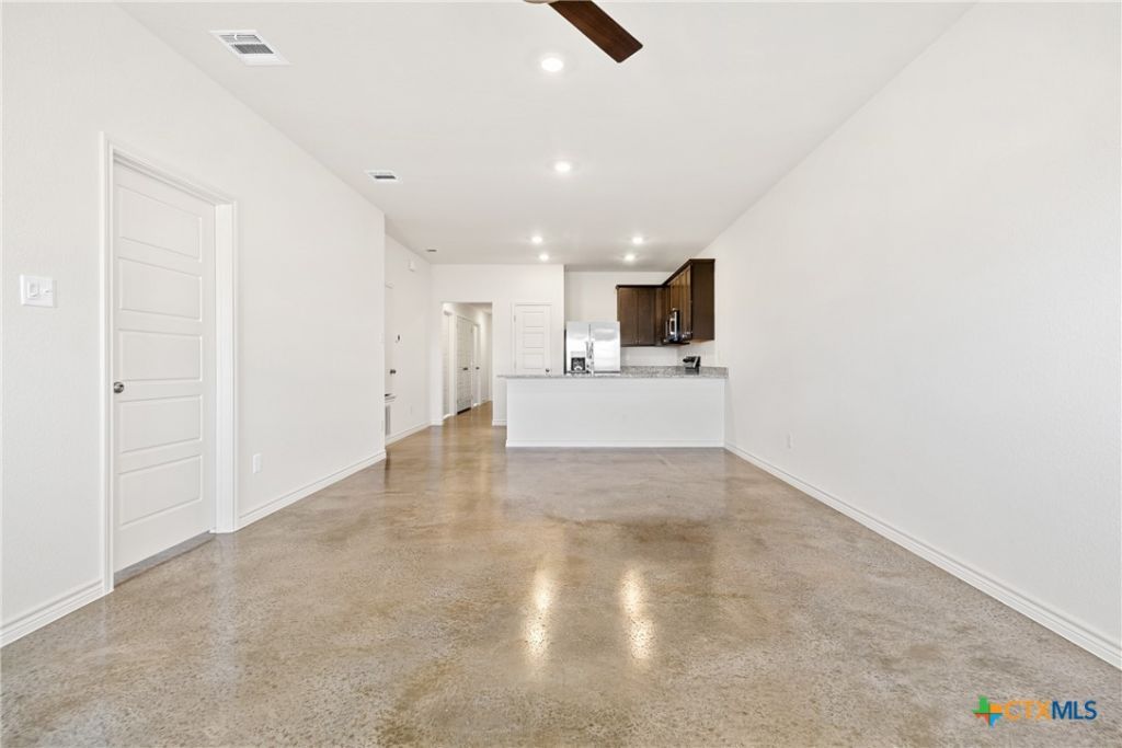 Discover the perfect blend of comfort and style in this spacious 3-bedroom, 2-bathroom duplex unit. Featuring sleek stained concrete floors throughout, this home offers a contemporary feel with easy maintenance. The open-concept living area is highlighted by recessed lighting, creating a warm and inviting ambiance. The modern kitchen is equipped with stainless steel appliances, ample cabinetry, and stylish finishes?ideal for cooking and entertaining. The primary suite boasts a private en-suite bathroom, while the additional bedrooms provide plenty of space for family, guests, or a home office. Conveniently located with easy access to shopping, dining, and major highways, this home is a must-see!