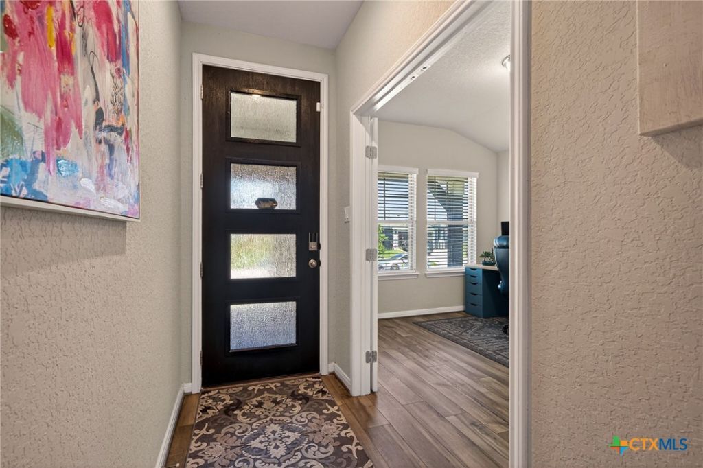 $10,000 Buyer Flex Money. Move-in ready and thoughtfully upgraded, this 3-bedroom, 2-bath home in New Braunfels offers exceptional value with the work already done for you. Inside, you'll find an open-concept layout with luxury vinyl plank flooring, a private office with glass French doors, and a spacious kitchen featuring a large island, ceiling-height cabinets, and a walk-in pantry-perfect for both everyday living and entertaining. The home includes several functional upgrades, including a remodeled laundry room with cabinetry, shelving, and countertop space, along with a custom dry bar that adds both style and versatility to the flex area. The primary suite offers bay windows and generous storage throughout the home. Step outside to enjoy a professionally landscaped front and backyard, complete with stone-lined garden beds, a driveway extension, and an extended stone patio with covered seating and an outdoor ceiling fan-designed for easy upkeep and comfortable outdoor living. Refrigerator, washer, and dryer convey, making this home truly move-in ready. Conveniently located near Creekside shopping, dining, and entertainment, with easy access to I-35 and close proximity to Gruene. A well-maintained home with thoughtful upgrades throughout, ready for its next owner to enjoy.