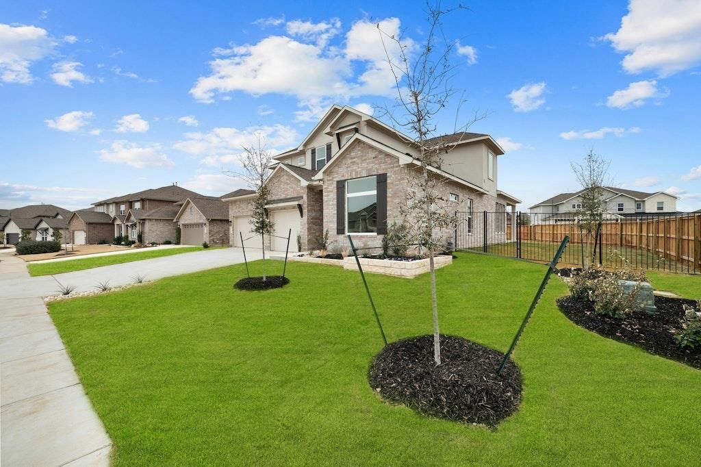 THIS HOME HAS OVER $77,835 IN UPGRADES! Discover this stunning, brand-new Irving floorplan, designed to impress with its abundance of natural light and thoughtful layout. This spacious two-story home boasts soaring 20-foot ceilings with open railing, creating a grand and airy atmosphere. The large kitchen is a chefs dream, featuring an 8-foot quartz island, built-in KitchenAid stainless steel appliances, and an open view of the family room, complete with a striking gas fireplace that extends to the ceiling. The primary suite is a true retreat with a tray ceiling, a luxurious freestanding soaker tub, and an impressive 13 by 8 walk-in closet. All secondary bedrooms are generously sized and complemented by a spacious game room and a dedicated media room for ultimate entertainment. Situated on a 10,321-square-foot corner lot facing north. This home is an exceptional blend of elegance, functionality, and comfort ? come see it for yourself.