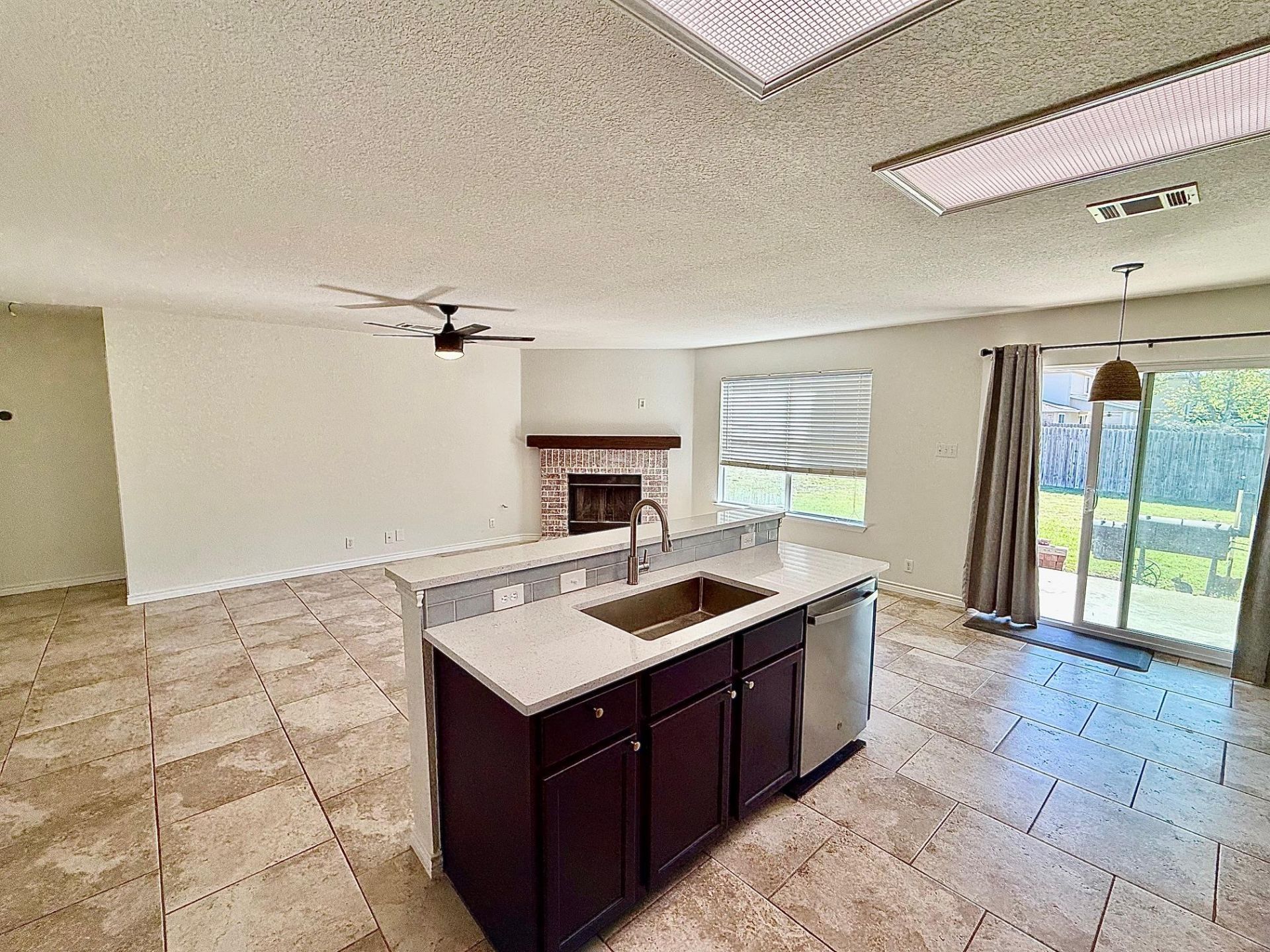 Step into comfort, style, and convenience with this beautifully remodeled 2,112 SF single-story home featuring 3 spacious bedrooms, 2 full baths, and a 2-car garage with an extended driveway. From the moment you walk in, youll appreciate the bright, open layout, highlighted by elegant tile flooring in the main living areas, plush new carpet in the bedrooms, and a cozy gas fireplace that creates the perfect gathering space.The heart of the home is the stunning, upgraded kitchen, complete with sleek quartz countertops, freshly painted cabinetry, a center island with service counter, and stainless-steel appliances?including a French-door refrigerator?ideal for both everyday living and entertaining. Unwind in the generously sized primary suite, offering a spa-like bathroom with dual vanities, a separate soaking tub and shower, and a walk-in closet equipped with built-in organizers. Each bedroom is thoughtfully designed with ceiling fans for year-round comfort, while the versatile third bedroom with wood flooring makes a perfect home office or flex space for todays lifestyle. Enjoy the added convenience of a dedicated laundry room featuring a front-load washer and dryer with a folding station, making daily routines effortless. Step outside to a large, private backyard with a covered patio?perfect for relaxing evenings or weekend gatherings. Even better, yard maintenance and pest control are included, giving you a truly low-maintenance, worry-free living experience. Ideally located near top-rated schools, shopping, dining, parks, and major roadways, everything you need is just minutes away. Homes like this dont stay available for long?schedule your tour today and make this exceptional home yours!