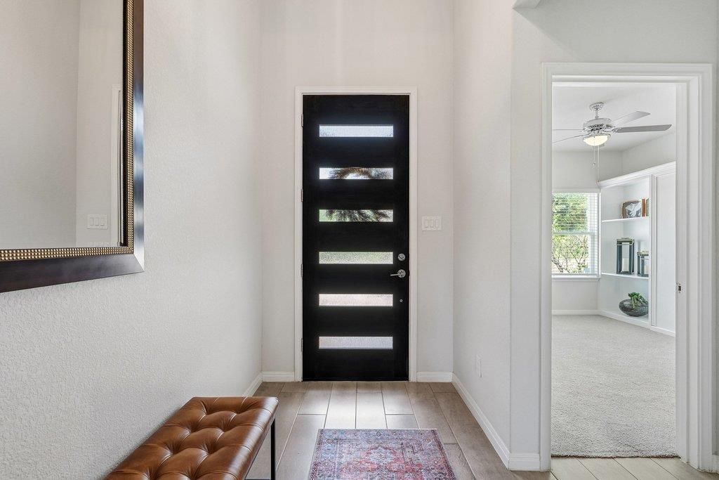 Welcome to 16817 Borromeo Ave, located in the highly sought-after Carmel master-planned community in Pflugerville. This stunning 3-bedroom, 4-bathroom home offers 2,632 square feet of thoughtfully designed living space with custom-level upgrades throughout.Built by Caledonia Builders, this home stands out with elevated finishes and smart enhancements that make it truly one of a kind. Designed to live like a single-story, all bedrooms and main living areas are conveniently located on the first floor, with a versatile upstairs bonus room and half bath?perfect for an office, game room, media room, or guest space.The beautifully manicured yard features a magazine-worthy backyard with lush landscaping and evident pride of ownership, supported by a rainwater collection system for easy maintenance. The outdoor space is a true highlight, featuring an extended covered patio with gorgeous stamped concrete and a custom pergola. Lined with hardwired lighting, this space is ideal for entertaining or relaxing in your own private retreat.Inside, youll find soaring ceilings, a grand entry, and a layout that balances openness with privacy. The spacious primary suite is tucked away on its own hallway and features dual vanities, a freestanding soaking tub, and a spacious walk-in shower. The large walk-in closet connects directly to the laundry room. Secondary bedrooms offer a Jack-and-Jill layout with separate vanities and walk-in closets.Additional features include a 3-car garage with extended third bay, water softener, instant hot water, two walk-in attic spaces, and an attic lift capable of lifting up to 340 lbs.Premium lot with no homes directly in front?just open green space views. Conveniently located near shopping, dining, and toll roads. Carmel amenities include pools, parks, trails, basketball courts, and playgrounds.