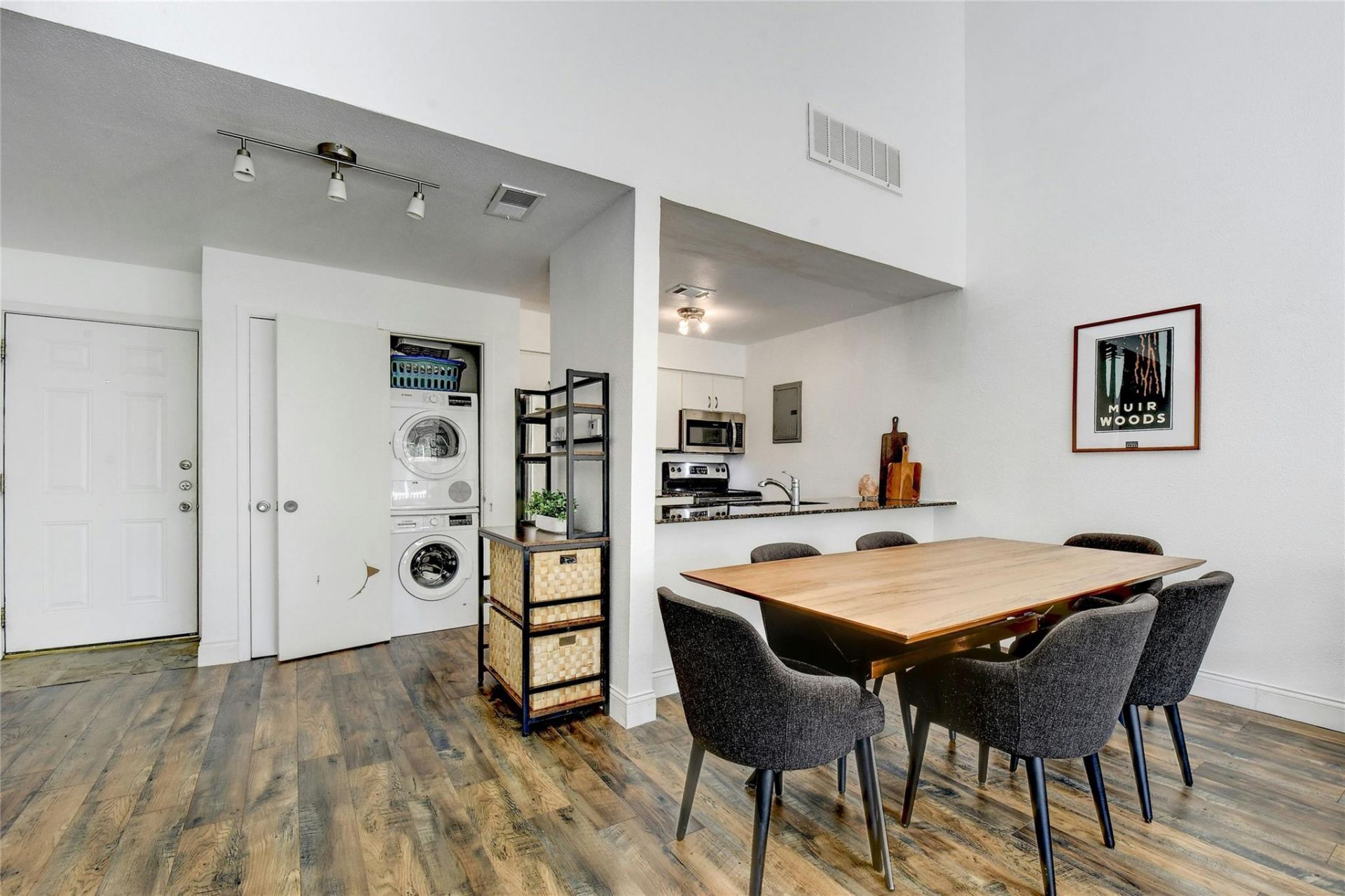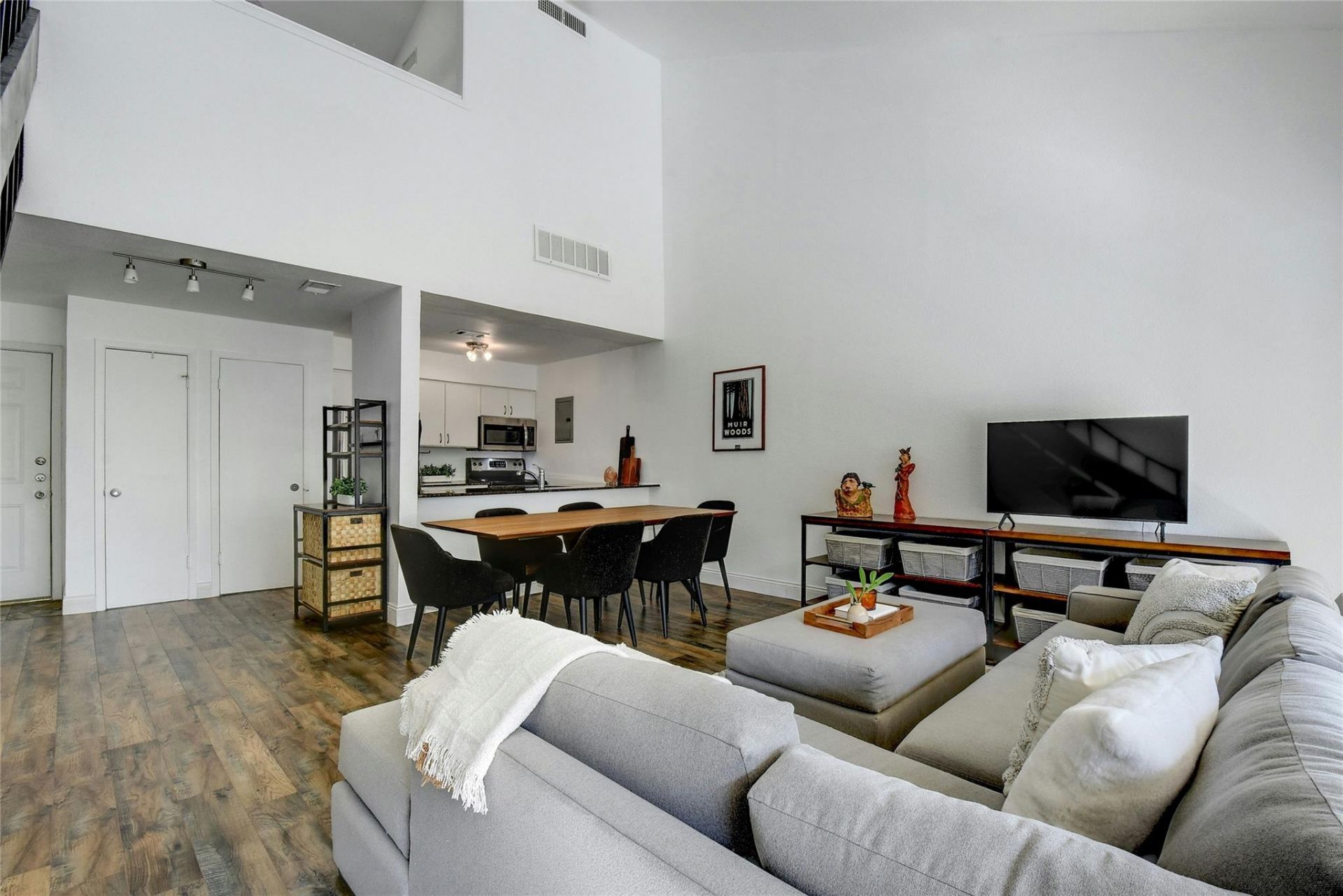 Fully furnished, mid-term lease (3 to 9 months) in a dream location. Light and bright 1 bed, 1 bath condo with private balcony overlooking tree-lined Town Lake Metro Park. Chill on the expansive private backyard lawn next to Lady Bird Lake, or relax on the private dock from which you can launch your SUP and enjoy views of Austins downtown skyline. Located less than 200 ft from the Hike & Bike Trail, half a mile to Oracles Waterfront Campus, a 20-minute walk to Rainey Street, 2 miles from downtown, and less than 10 minutes to the airport. Gated complex with covered, carport parking. Recent updates: new paint, new floors, new interior stair treads. In the common area, there is new pool fencing and newly painted railings throughout. No popcorn ceiling. Water and trash included in rental price!