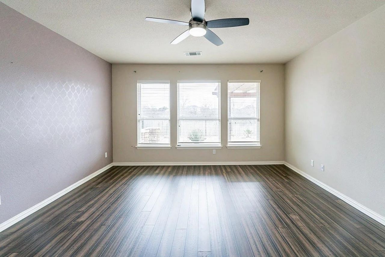 Stunning, like-new home featuring elegant hardwood flooring, soaring ceilings, and an abundance of natural light from expansive windows throughout. The open-concept design is enhanced by high-end granite countertops and premium appliances, creating a perfect blend of style and functionality. This spacious residence offers 4 bedrooms, a dedicated office, a bonus room, and a unique movie theater with windows?ideal for both everyday living and entertaining. The home is equipped with built-in speakers throughout, adding a modern touch to every space. Step outside to beautifully landscaped grounds with exceptional privacy?no neighbors behind and a greenbelt bordering the rear and one side. Additional features include an attached garage, central air conditioning, and a generous 2,927 sq ft of living space. Convenient laundry hookups and an included dishwasher add to the homes practicality. This exceptional single-family residence combines luxury, comfort, and privacy in one remarkable property.