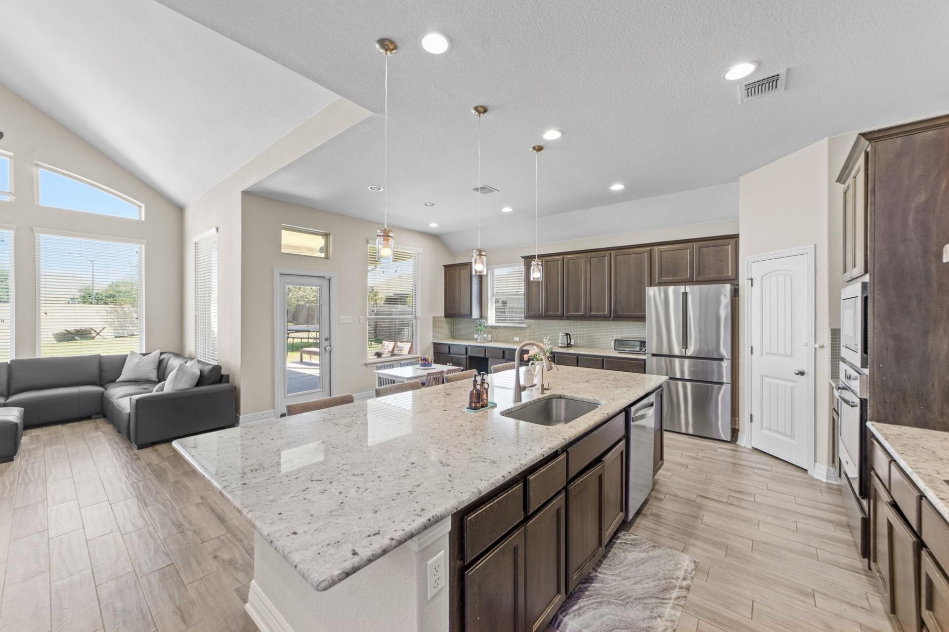 Welcome to this beautifully maintained 3-bedroom, 2-bath home with a dedicated home office and additional living area, ideally situated on a quiet cul-de-sac in the highly desirable Avalon community?and within walking distance to neighborhood amenities.Step inside to soaring ceilings and abundant natural light, creating a bright and inviting atmosphere. The open-concept floor plan seamlessly connects the spacious living and dining areas to a well-appointed kitchen?perfect for both everyday living and entertaining.The primary suite offers a private retreat with ample space and comfort, while two additional bedrooms provide flexibility for guests, work, or hobbies.Enjoy the added benefit of solar panels for energy efficiency and long-term savings, along with an extended, insulated, and air-conditioned garage?ideal for storage, a workshop, gym, or larger vehicles.Step outside to an oversized, private backyard featuring outdoor lighting?perfect for relaxing, entertaining, or creating your own outdoor oasis.Residents of Avalon enjoy resort-style amenities, including pools, scenic walking trails, and beautifully maintained community spaces?all just a short walk away.Dont miss this opportunity to own a move-in ready home in one of the areas most sought-after neighborhoods!