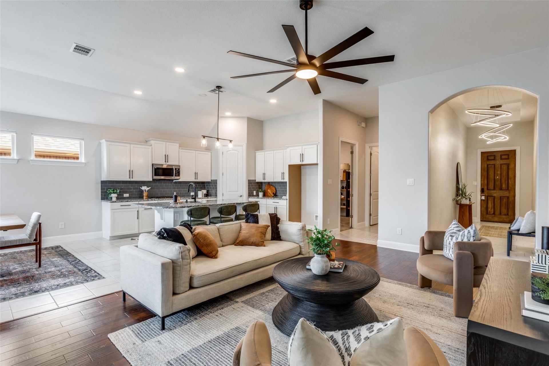 Gorgeous Property within walking distance to Community Center! Soaring 11-foot ceilings and an open light filled layout, this 2,250 sq ft home lives even larger than its footprint. Freshly painted in modern neutral tones, the interior creates a clean, inviting atmosphere that is completely move-in ready. The spacious living area flows seamlessly into the kitchen and dining space?ideal for both everyday living and entertaining. The recently refreshed kitchen features upgraded Samsung appliances, including a microwave and dishwasher, and is complemented by updated designer fixtures throughout?creating a modern, elevated feel that stands out! Smart home upgrades including a Nest thermostat and front door smart lock bring convenience and efficiency to everyday living. The primary suite is a true retreat, featuring vaulted ceilings and beautiful bay windows that fill the space with natural light and create a bright, open atmosphere. Recently installed luxury carpet and upgraded padding in all bedrooms add comfort and a high-end feel underfoot. Additional bedrooms provide flexibility for guests, a home office, or growing needs. 4th Room is an enclosed office. Add a closet to easily convert to a technical bedroom. Enjoy outdoor living with both covered front and back patios, plus a screened-in back patio that provides the perfect space to relax, entertain, or unwind without the hassle of bugs. Additional exterior upgrades include a custom-built 10x10 shed on a poured concrete foundation and a concrete walkway connecting the front and rear porches. Too Much to list! Schedule Your Showing Today!!**DISCLOSURE**The list price DOES NOT reflect the seller's final reserve price. This property WILL NOT be sold if the sellers final market value reserve price is not met. Seller will ONLY CONSIDER MARKET VALUE OFFERS based on sold comparable data**All Financing Acceptable**ALL OFFERS DUE BY MONDAY APRIL 20TH-5PM**SELLER RESERVES THE RIGHT TO ACCEPT ANY OFFER AT ANYTIME**