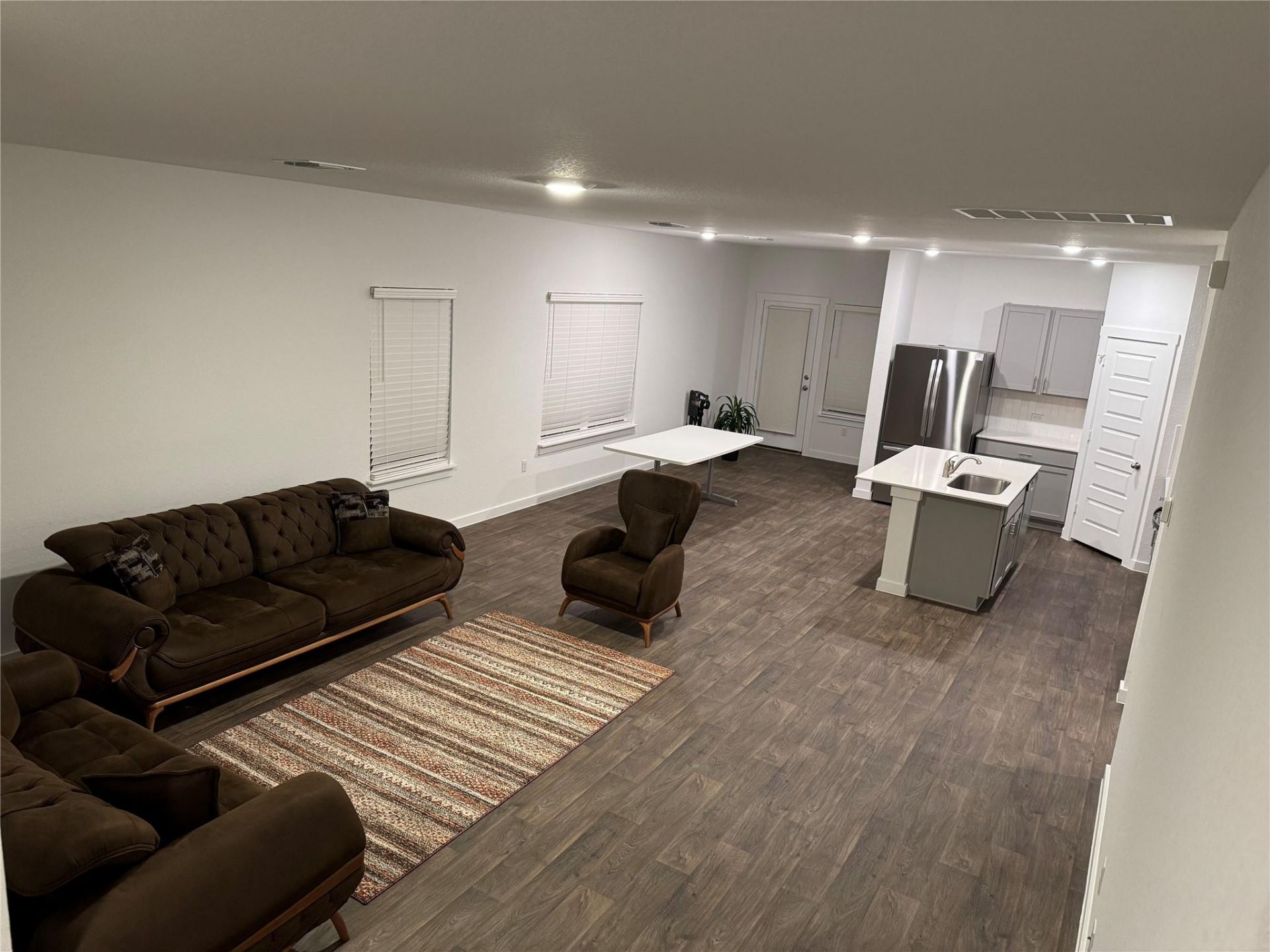 Ideally located just minutes from grocery stores and shopping, this stunning two-story home offers 2,320 square feet of thoughtfully designed living space, featuring 4 bedrooms, 3 full bathrooms, and a spacious game room.Step inside to a welcoming foyer that leads past the staircase and laundry room (washer/Dryer included) into a bright, open-concept family room?perfect for gathering and entertaining. The family room flows seamlessly into the dining area and a beautifully appointed kitchen, complete with a large center island, walk-in pantry, decorative tile backsplash, and sleek stainless steel electric appliances.Tucked behind the main living area, youll find two secondary bedrooms along with a full bath, providing comfort and privacy. The primary suite is ideally situated off the dining area, offering a peaceful retreat with a spacious en-suite bathroom and a generous walk-in closet.Upstairs, enjoy a large game room thats perfect for movie nights, play space, or hosting guests. A fourth bedroom and full bathroom are privately located just off the game room, making it an ideal setup for visitors or a home office.Step outside to relax under the covered patio, and enjoy the convenience of full sod and an irrigation system?making outdoor living easy and enjoyable.