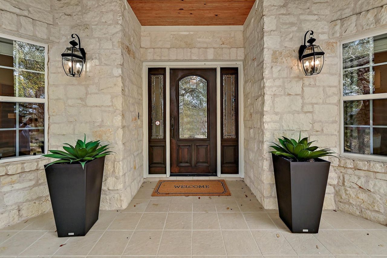 Settled beneath 44 mature live oaks on a rare double lot in the 24/7 guard-gated community of The Hills, 22 Hedgebrook offers the kind of privacy and setting that is genuinely hard to find in Lake Travis. The limestone Hill Country exterior, tile roof, and flagstone walkway create real curb appeal, and the covered front porch overlooks the tree-lined yard.Inside, light-colored hardwood floors, soaring ceilings, crown molding, and substantial baseboards run throughout the main level. The flexible layout includes a formal living room and private office with built-in cabinetry. The kitchen features granite countertops, two-tone cabinetry with a dark center island and induction cooktop, KitchenAid stainless appliances, a French door refrigerator, large pantry, double sink, and a built-in desk nook. Two separate dining areas give the home genuine versatility. A screened-in porch opens to a backyard with mature trees, a limestone retaining wall, and a bocce ball court (or use it for cornhole or petanque). The half bath has an exterior door positioned for a future pool bath.Upstairs, the primary suite is a standout. The bath has been completely remodeled with dual vanity stations, white shaker cabinetry, granite countertops, a glass-enclosed walk-in shower, and a custom closet with drawers and built-in organizers. Both the primary and front bedroom open onto a covered upper-level porch. Two secondary bedrooms each include a private vanity sink and mini walk-in closet, sharing an updated Jack-and-Jill bath with tile surround and glass door. A fifth bedroom with en suite bath completes the main level with an additional bedroom/craft room. The game room is reinforced for a pool table. The laundry room includes a utility sink, ample cabinetry, and direct access to the split three-car garage with overhead storage.Mandatory social membership to The Hills Country Club ($147/month) includes pool access, restaurant dining, and year-round social programming.