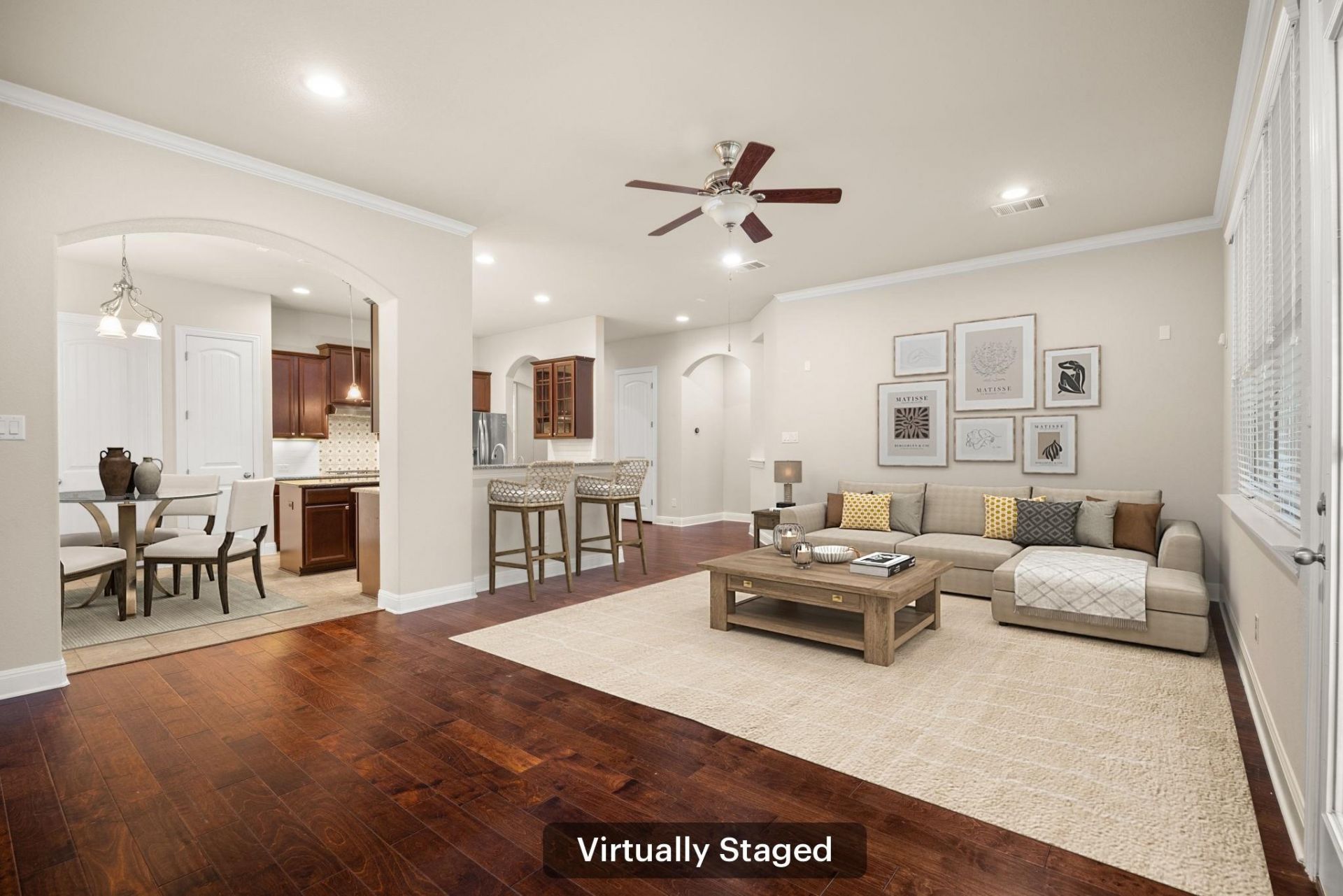 Located in a hot Leander corridor near Ronald Reagan Blvd & Hwy 1431, this beautifully maintained home offers exceptional convenience with easy access in every direction?perfect for commuters and those who value connectivity without sacrificing comfort.From the moment you step inside, youll notice how meticulously cared for this home is ? it truly feels like new. The first floor welcomes you with rich engineered hardwood flooring, soaring 10-foot ceilings, and elegant 8-foot doors that enhance the homes spacious, airy feel. Natural light pours in, highlighting the open-concept layout designed for both everyday living and effortless entertaining.The heart of the home features a warm, inviting kitchen complete with granite countertops and rich finishes, seamlessly opening to a generously sized living room. The primary suite, also located downstairs, offers a relaxing retreat with ample space and comfort.Upstairs, youll find an oversized multi-purpose game room?perfect for a media space, playroom, or home office ? along with plush carpeting that adds comfort throughout the second level. With both a large living area downstairs and expansive game room upstairs, theres truly room for everyone to spread out and enjoy.One of the standout features is the fully renovated primary bathroom. The owners spared no expense, investing in high-end upgrades that create a spa-like experience and set this home apart from others in the area. Additional features include a custom-designed primary closet, extended covered patio for outdoor living, and quality finishes throughout.Residents of Pecan Creek also enjoy fantastic community amenities, including a welcoming community center, sparkling pool, neighborhood park, and a beautiful pond ? perfect for unwinding or staying active close to home.