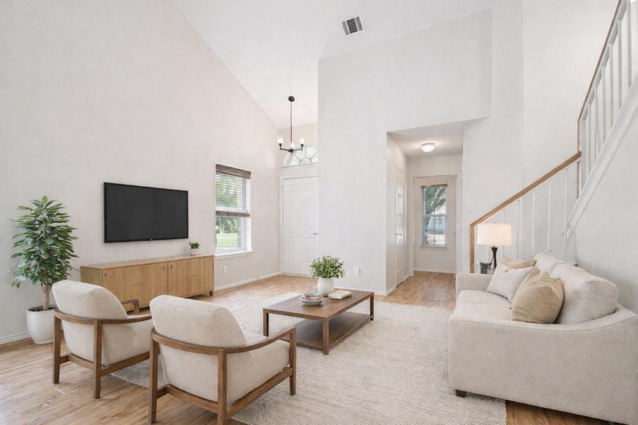 Light-filled, spacious, and thoughtfully designed?this Leander home offers the perfect blend of comfort and functionality. Step inside to a welcoming interior where soaring vaulted ceilings and abundant natural light create an open, airy feel throughout the main living space. The layout is designed for both everyday living and entertaining, with the kitchen seamlessly opening to the family room, making it easy to stay connected whether you're hosting or relaxing at home. The main-level primary suite provides a private retreat, complete with a generous layout, a garden tub, separate shower, and ample space to unwind. Upstairs, a versatile open loft overlooks the living area below, offering the perfect flex space for a second living room, game area, or home office. Two additional bedrooms and a full bath complete the upper level, providing plenty of room for family or guests. The kitchen offers abundant cabinet space and functionality, while a dedicated breakfast area provides the perfect spot for casual dining. Step outside to a covered patio and spacious backyard, ideal for outdoor entertaining, weekend barbecues, or simply enjoying quiet evenings at home. With its well-maintained condition, flexible floor plan, and inviting spaces throughout, this home is a fantastic opportunity to enjoy comfortable living in a convenient Leander location. *Roof is being replaced*