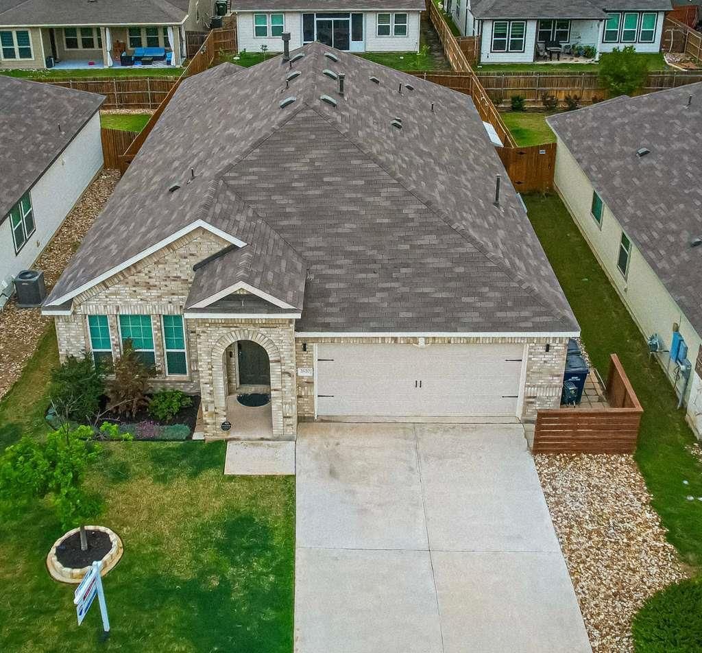 Beautifully maintained and thoughtfully upgraded home in the heart of Leander! This property offers a functional and flexible layout with a dedicated bonus room off the entry featuring glass double doors?perfect for a home office or flex space.The open-concept kitchen and living area are enhanced with integrated lighting and wired 7.1 surround sound, creating an ideal setup for both everyday living and entertaining. The large kitchen is equipped with stainless steel appliances including a built-in gas range, vent hood, microwave, convection oven, refrigerator, and dishwasher. Washer and dryer convey for added convenience.The spacious primary suite includes bonus square footage, providing the perfect space for a private office, workout area, or sitting room. It also features wired surround sound, with speakers and amp included.This smart home is equipped with a camera doorbell, two fixed exterior cameras, and a 360-degree camera over the garage, offering both convenience and security.