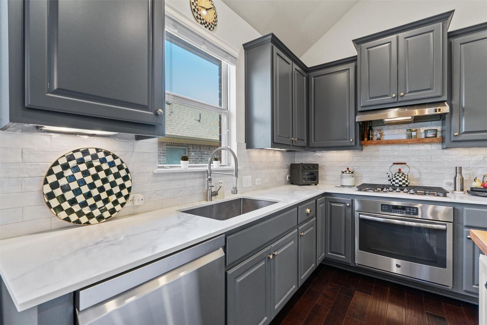 Located on a quiet cul-de-sac street in the vibrant community of Traditions at Vizcaya, this beautifully maintained home offers style, space, and thoughtful updates. A new roof installed in December 2025 adds peace of mind, while the inviting open floor plan showcases expansive windows, soaring ceilings, and rich wood floors throughout the main living areas. The living room, wired for music and anchored by a cozy fireplace, flows effortlessly into the tastefully remodeled kitchen featuring sleek quartz countertops, a wood-topped center island, gray cabinetry with pull-out drawers, a classic subway tile backsplash, stainless steel appliances, and a convenient pantry. Enjoy everyday meals in the sunny breakfast area or host special gatherings in the dedicated dining room. A private office with French doors provides the perfect work-from-home space. The spacious primary suite features a charming bay window and an ensuite bath with dual vanity, soaking tub, separate shower, and walk-in closet. Two additional bedrooms on the main floor offer flexibility for guests, each with its own closet and sharing a well-appointed full bath. Upstairs, a large flex space can easily serve as a fourth bedroom, home gym, or playroom, complemented by a convenient half bath and additional storage room. Step outside to the spacious fenced backyard, where a covered patio wired for music and an extended patio create the perfect setting for relaxing evenings or lively gatherings. Residents of Traditions at Vizcaya enjoy resort-style amenities including miles of scenic trails, fishing ponds, a sparkling pool, all-sports and sand volleyball courts, and a playground. Ideally located near the elementary school, everyday conveniences, and abundant shopping, dining, and recreation options?including H-E-B and IKEA?with easy access to I-35, US 79, and TX-130 for effortless commuting.