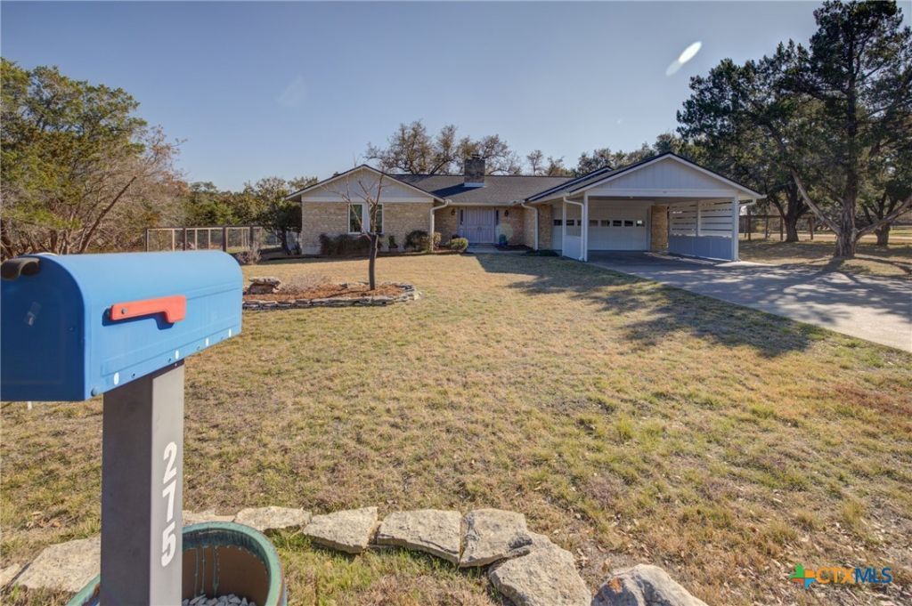 Sophisticated charm meets modern flair on over an acre of private, tree-lined paradise. Perfectly positioned on a prime corner lot in a coveted Hill Country community, this fully reimagined residence stuns with designer finishes, vaulted ceilings, and seamless indoor-outdoor living. Step into a light-filled, open-concept layout featuring a show-stopping stone accent wall, beamed ceilings, and a chef-inspired kitchen that flows effortlessly into the grand living and dining areas. The luxurious primary suite offers serene backyard views, a spa-like en suite with a soaking tub, and a beautifully tiled walk-in shower. Secondary bedrooms are bright and inviting with a chic guest bath to match. Outside, a newly built fence encloses the lush yard-ideal for pets and play-while a masonry firepit and covered patio invite unforgettable evenings under the stars. Energy-efficient upgrades, smart storage, and a 2-car garage with laundry pass-through.