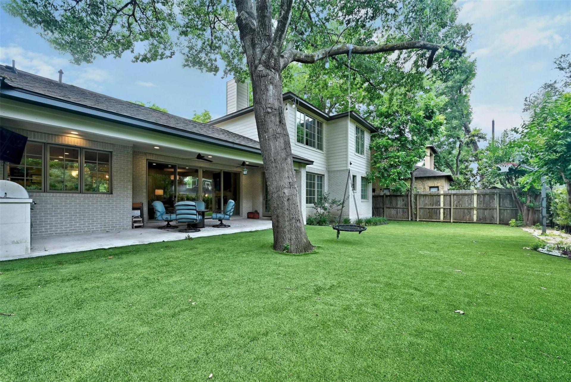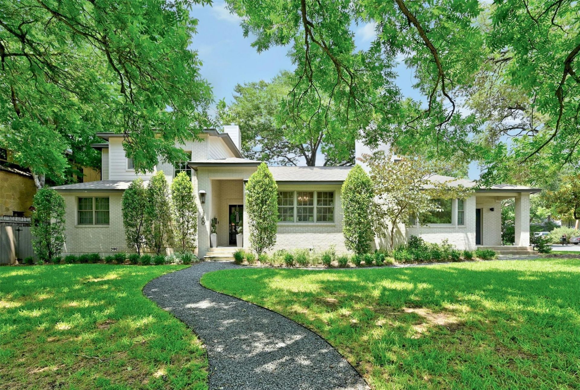Welcome to 3400 Oakmont, an exceptional residence situated in Austins highly desirable Bryker Woods neighborhood. This home was thoughtfully remodeled and expanded in 2015 by Butterfield Custom Homes, blending contemporary upgrades with timeless character. The generous open living area offers both comfort and style, seamlessly connecting to an expansive covered porch equipped with an outdoor kitchen. This space is ideal for hosting gatherings or simply enjoying the tranquility and privacy provided by the shaded backyard. Designed to accommodate a variety of lifestyles, the floorplan is highly flexible. Homeowners and guests can choose to dine in the formal dining room, relax in the breakfast nook with a cozy banquette, or gather around the oversized kitchen island for casual meals and conversation. The residence features five bedrooms, four of which include en suite bathrooms for added convenience and privacy. The primary suite, offering a comfortable retreat, is located on the first floor along with an additional bedroom. The fifth bedroom stands out with its private entrance, making it perfectly suited for use as a guest suite or a home office. 3400 Oakmont is conveniently located just blocks away from Bryker Woods Elementary and St. Andrews. Residents can easily access popular dining spots such as Tiny Boxwoods, Milk & Cookies, 34th Street Cafe, Postinos, and P. Terrys. The home is also within close proximity to Central Market and a variety of retail options, providing an outstanding opportunity to enjoy the best of Austin living.