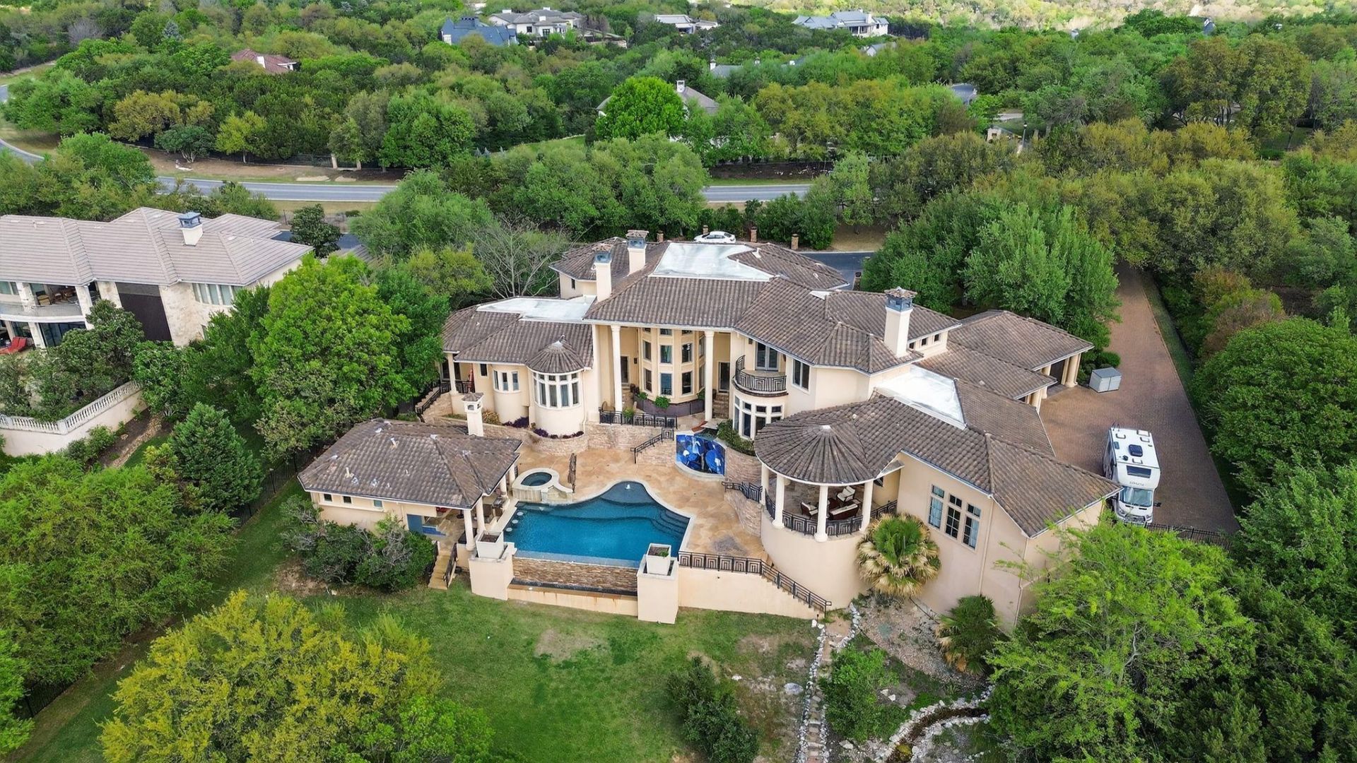 Everything you would expect from a 2.5 acre, 10,000 square foot Barton Creek Estate home, plus?. features you wont find anywhere else. Exceptional styling and craftsmanship including a to-die-for master suite and over the top luxury closet with a place to highlight your most treasured possessions plus a secret room to safeguard your favorite items (see the video for the full demo), a great room designed with style while focused on fun, over a dozen exotic granites, wall sized handmade glass mosaic mural, imported Spanish marble and travertines, huge hand-painted wine living room, monster-size home theater, multiple home office configurations, dedicated detached luxury designed guest house with separate entrance and parking, swim-up pool bar with pool-side TV, and even a huge private meditation pond, stream, and pergola. The list goes on and on. The home can be configured with up to 7 bedroom suites, and/or offices, living rooms, games rooms, spas or gyms, etc. (Property may be larger than TCAD estimates - Buyer to verify all information independently) Available fully furnished for an additional price.