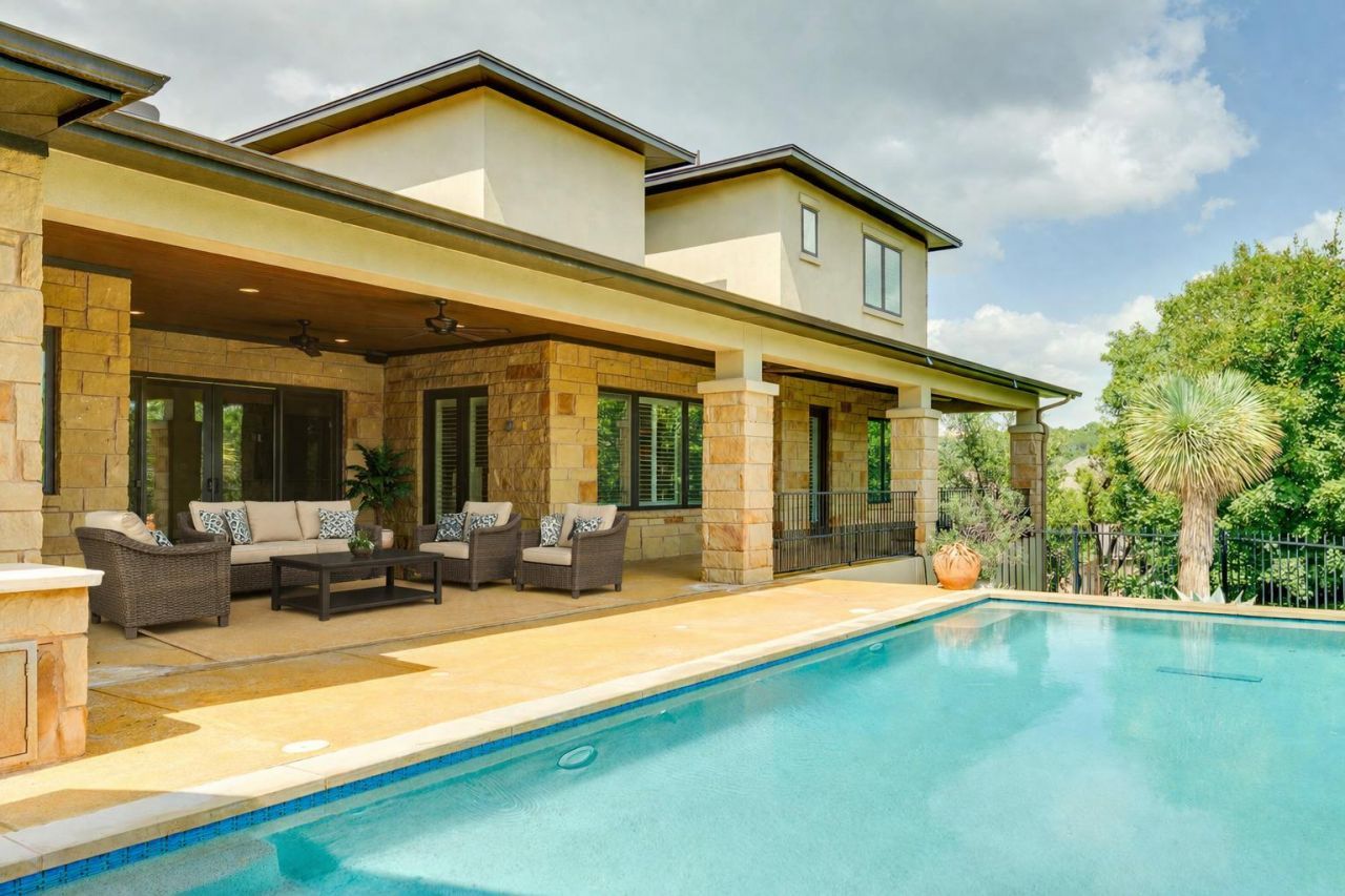 Hill Country Elegance in Grand Mesa at Crystal Falls Welcome to luxury living in the prestigious gated community of Grand Mesa at Crystal Falls. This stunning 4-bedroom, 5-bathroom estate combines timeless craftsmanship with modern comfort, offering a lifestyle defined by elegance and relaxation. Step inside to discover soaring beamed ceilings, rich hardwood floors, and custom built-in bookcases that add warmth and character throughout. The open-concept living area features a grand fireplace, creating a cozy focal point ideal for entertaining or relaxing evenings. The chefs kitchen is a showstopper, complete with granite countertops, high-end appliances, and ample prep space?all framed by breathtaking Hill Country views. A dedicated wine room adds a refined touch for enthusiasts and entertainers alike. Retreat to a spacious primary suite where luxury meets tranquility, highlighted by a spa-like bath with a separate tub and walk-in shower, dual vanities, and generous closet space. Entertain in style with your own movie theater room or step outside to a resort-style backyard oasis featuring a sparkling pool, covered patio, and a fully equipped outdoor kitchen?perfect for year-round enjoyment. A stately stone exterior and an oversized 3-car garage complete this remarkable property, all nestled on a scenic lot with expansive Hill Country views. This home is more than a residence?its a retreat. Experience upscale living in one of Leanders most sought-after communities.
