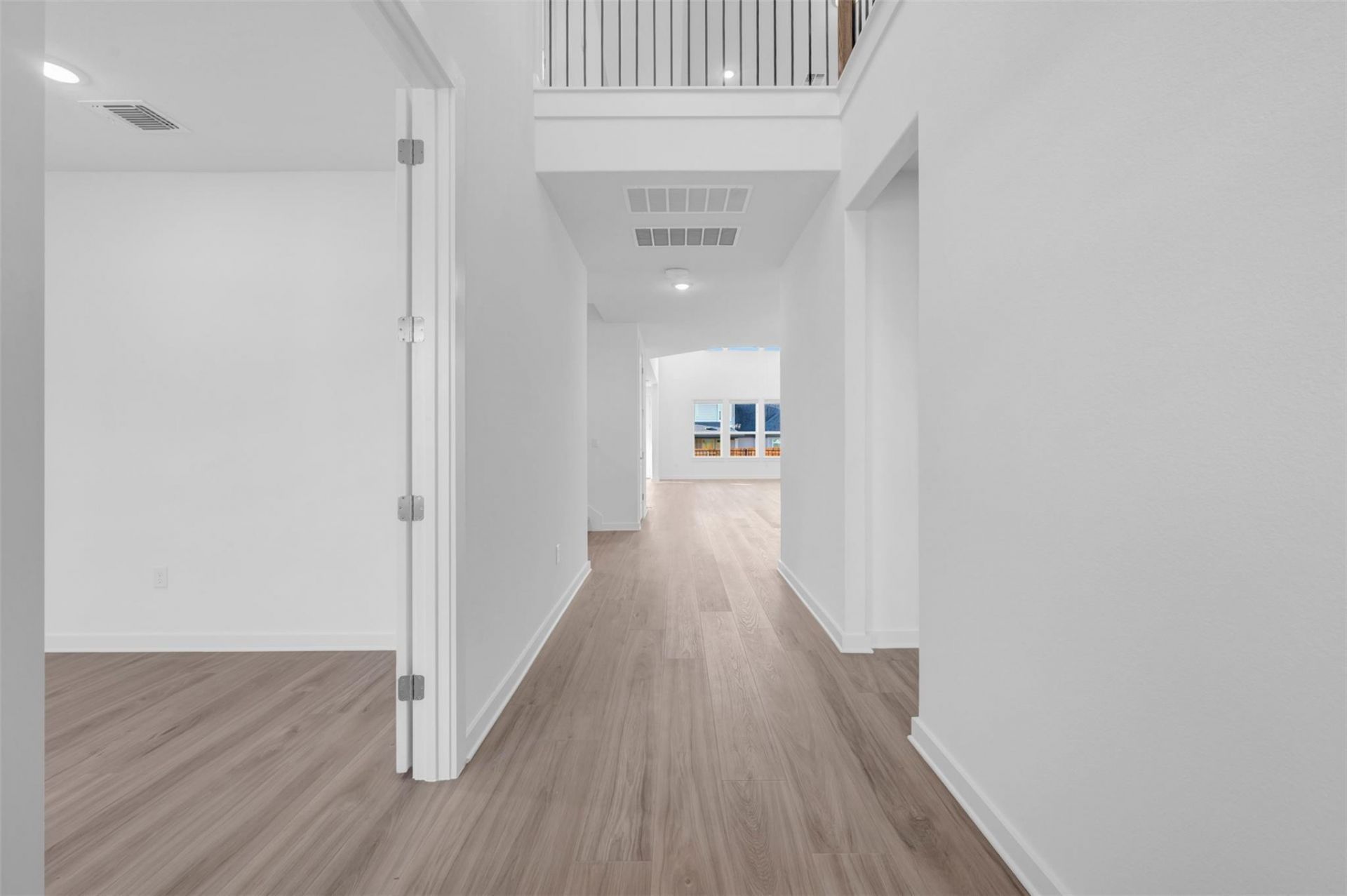Dickinson floor plan. This grand 4132sf home, with it's high ceilings, and extended kitchen cabinets, is a chef's dream! The gourmet kitchen opens to a large breakfast area and also a formal dining room. The owner's suite is downstairs and features a beautiful bay window and deluxe bath. The first floor also contains a study, formal dining room, and a secondary bedroom suite. The huge family room has two stories of windows and is open to below. An extended patio is complete with a gas line for outdoor cooking and overlooks the wonderful backyard. As for the upstairs, there is a large game room, off of which split 3 bedrooms and a media room. The home has three bedrooms with attached bath. This bright open concept 2 story has many upgrades! This home will be ready in April. Schedule a visit to see this home.