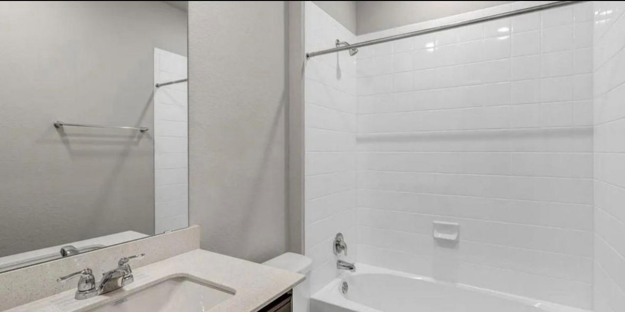4 bedrooms and pets ok! As you enter the home you are greeted by the open floor plan and a bedroom/office at the front of the house. The sparkling kitchen includes SS appliances, center island, and refrigerator included. Amenity Center across the street!