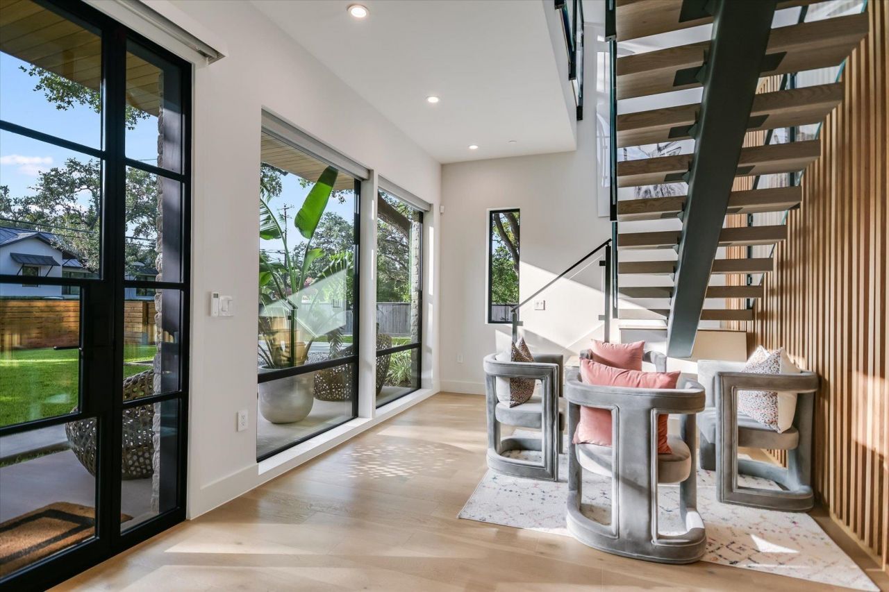 Welcome to a modern build on one of the most desirable streets in Rollingwood without the Rollingwood price.From morning coffee on the back patio to laid-back evenings by the pool, the home offers a seamless indoor-outdoor rhythm. The heart of it all is the stunning kitchen, centered around an oversized 14 ft quartz island with Wilsonart countertops that draws everyone in whether for quiet meals, celebrations, or spontaneous late-night conversations. Nearby, dining and living spaces unfold with natural ease, leading out into the backyard for a fluid blend of gathering and retreat.The large and private primary level suite is a peaceful escape, with garden views and direct access to the outdoors, an ideal setting to begin or end the day. Additional private spaces, including a tucked-away study/flex space and a well-appointed bedroom with an en-suite bathroom, provide quiet, flexibility, and comfort.Upstairs, the energy shifts with room to unwind, play, and recharge. A bright game room opens to a shaded balcony, while 3 additional bedrooms, one with an ensuite and one with a jack and jill, offer restful space and practical function. Smart details throughout like an upper-level include a second laundry room, a custom mudroom just off the two-car garage, and a beautifully designed pool half bath made to make daily life feel beautifully organized.Outside, the experience continues. Lounge poolside, gather around the fire, or enjoy quiet mornings surrounded by curated landscaping and complete privacy. The fully fenced front yard and secure entry add peace of mind to this modern sanctuary.Sophisticated yet approachable, meticulously designed contemporary home offers the epitome of luxurious living. This spacious yet warm home that reflects the way people want to live today. Minutes from downtown, tucked into a serene neighborhood, this residence is ready for its next chapter.