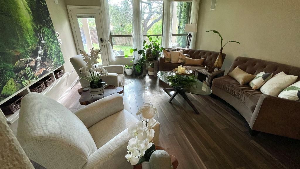 Loaded with upgrades and literally steps from a huge community pool, this high-quality Leander home features built-in technology, pre-wired TV and surround sound, smart irrigation, mature trees, premium appliances, and gas cooking. Move-in ready with many furnishings available to convey?better than new with no added costs.What new construction hopes to become over time is already here. Instead of starting from scratch with minimal landscaping and years of waiting, youre stepping into a home with established trees, shaded outdoor space, and a yard that already feels complete. Everything is finished, functional, and designed for real day-to-day living.Inside, the home blends durability and comfort with wood-look tile flooring, thoughtfully designed living spaces, and integrated tech that makes everyday life easier?from entertainment setups to efficient home systems. Like-new appliances further reduce upfront expense and effort. Outside, raised garden beds and a fully integrated irrigation system make maintaining and enjoying the property effortless.Built by Darling Homes, known for quality craftsmanship and lasting construction, this home reflects a level of build integrity and thoughtful design that continues to stand the test of time.Located in one of the fastest-growing areas of the Austin metro, youll benefit from strong long-term upside while enjoying immediate lifestyle advantages. Zoned to Leander ISD and just minutes from 183/183A, MetroRail access, and a direct route to Austin, this location offers the perfect balance of convenience and calm.This isnt just a home?its a smarter buy. No waiting, no extra investment, no unfinished details. Just immediate livability, long-term value, and a home thats already ready for you.