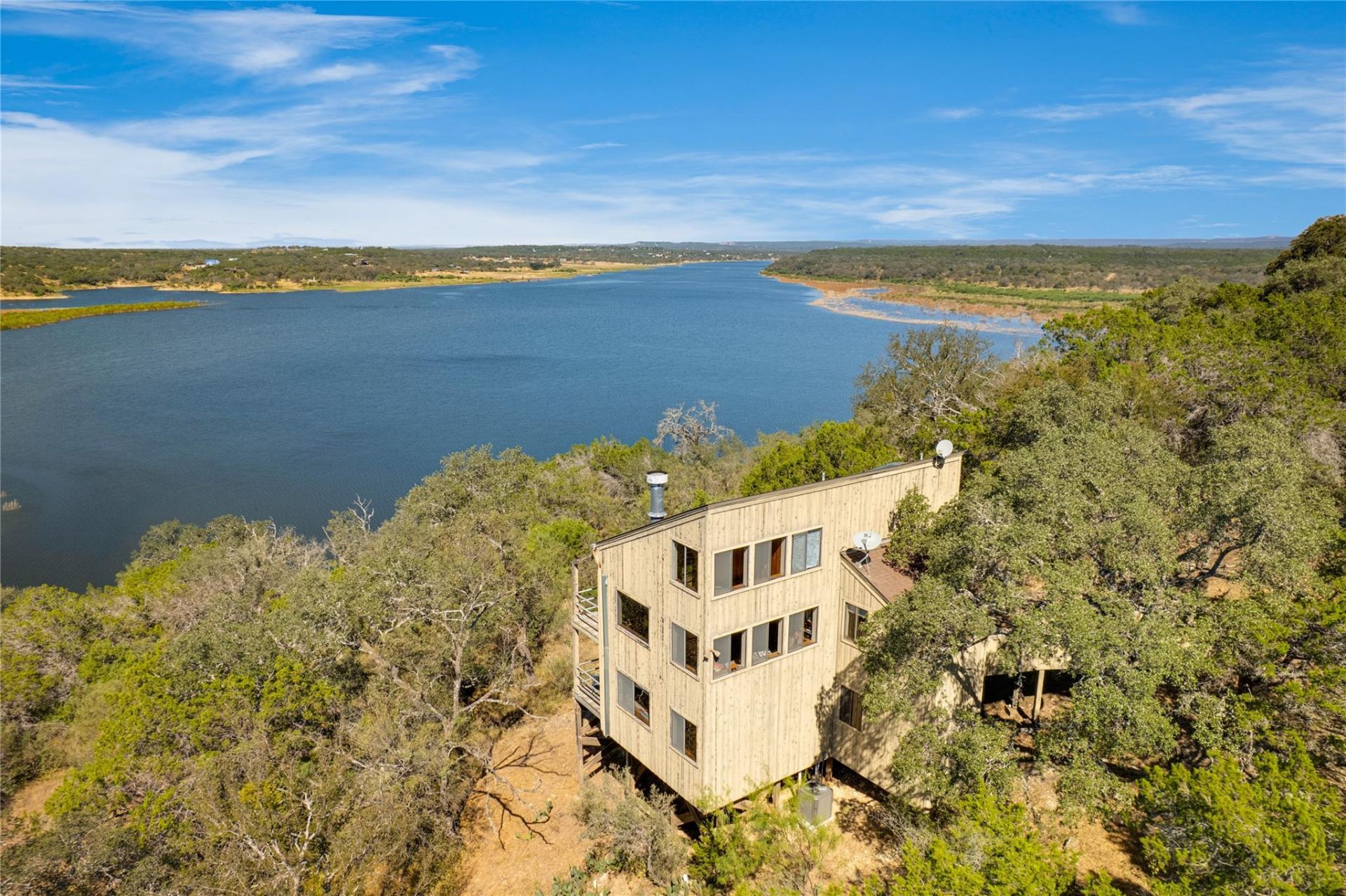 Own your very own SLice of Life! .....a waterfront cabin on Lake Travis! This older home has lots of character and potential. Entry level has Kitchen, Livingroom, several cool lofts, a balcony, and a bathroom with a shower. Downstairs has two bedrooms, a full bath with an amazing tub/shower overlooking Lake Travis, a wet bar, utility room, and balcony. Needs some TLC, being sold as is, enjoy and rebuild a forever home later, or just have fun with this one. Located in a beautiful development call Windermere Oaks. Amenities include a boat ramp, three swimming pools, two tennis/pickleball courts, a community Pavilion, and next door is the Spicewood Airport. Boat slips available to rent or purchase.