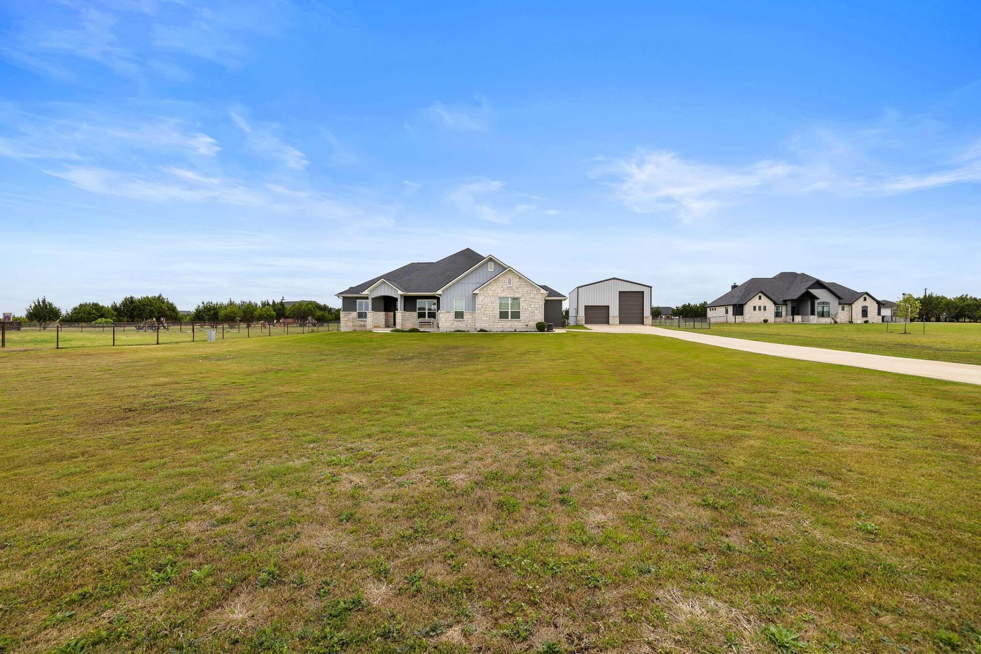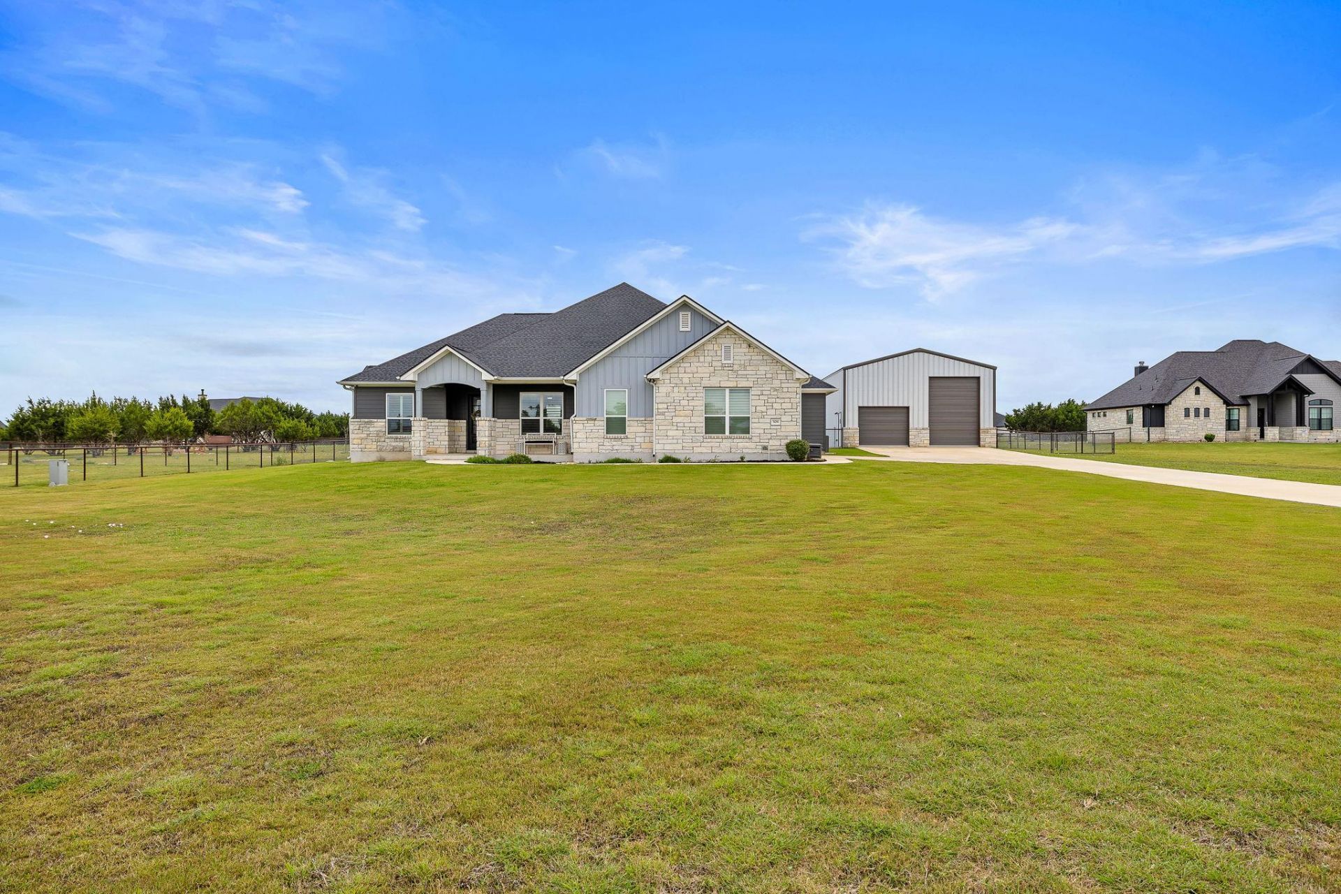 Welcome to the perfect blend of luxury, functionality, and Hill Country living in the sought-after community of Mesa Vista Ranch. Situated on a spacious homesite with wide-open views, this beautifully designed property offers the lifestyle buyers dream about, complete with a resort-style pool, an incredible detached shop, and room to truly spread out.Inside, the home is warm and inviting with a bright open layout, soaring ceilings, gorgeous wood cabinetry, rich flooring, and thoughtfully designed living spaces throughout. The stunning kitchen opens seamlessly to the main living area and features expansive granite countertops, stainless steel appliances, abundant cabinetry, and a large island ideal for entertaining. The spacious primary suite feels like a private retreat with serene backyard views, a spa-like bath, soaking tub, oversized walk-in shower, and an impressive walk-in closet.Step outside and the magic continues. The custom 16 x 30 chlorine pool creates the ultimate backyard oasis with a beautiful tanning ledge, relaxing waterfall feature, expansive patio space, and a covered outdoor living area perfect for year-round entertaining. Whether hosting friends, enjoying sunset swims, or spending quiet evenings under the string lights, this backyard was made to be enjoyed.One of the propertys most exceptional features is the 30 x 40 detached metal shop, offering endless flexibility for RV storage, hobbies, equipment, or a dream workshop. Designed with convenience in mind, it includes two front roll-up doors and an additional rear roll-up door for pull-through access, easily accommodating up to a 37-foot RV. The shop is also equipped with two 20-AMP plugs, making it ideal for projects, tools, or additional workspace needs.With chickens allowed in Mesa Vista, expansive outdoor space, and a rare combination of luxury finishes plus highly functional storage and workspace, this property offers the very best of Liberty Hill acreage living.