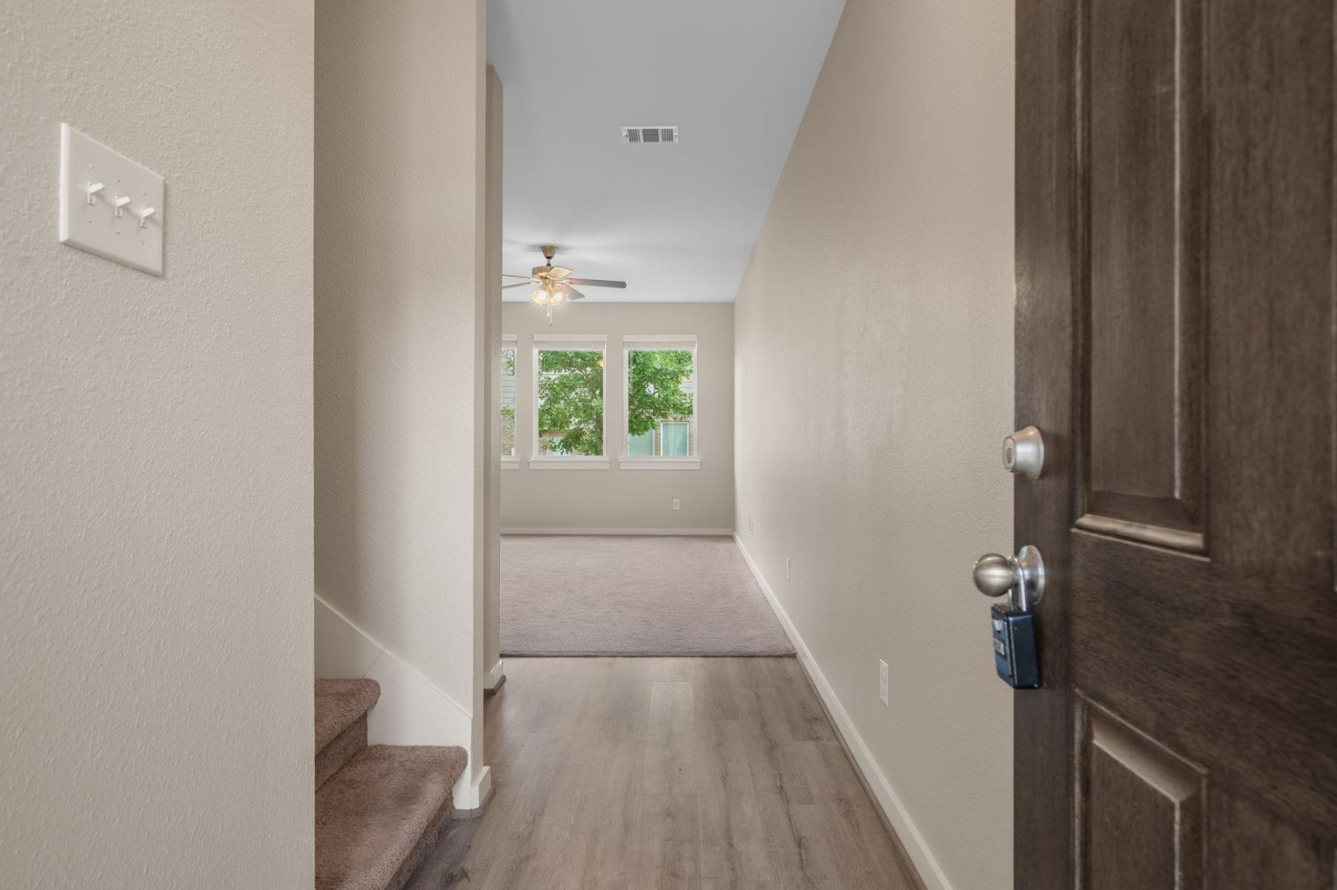 Well-maintained and ideally located, this light-filled townhome offers a smart open-concept design connecting the kitchen, living, and dining areas. The kitchen features granite countertops and durable vinyl plank flooring, creating a stylish and functional space for everyday living. Upstairs, the spacious primary suite includes a walk-in closet and a private bath with dual vanities and a walk-in shower. Two additional bedrooms and a full bathroom provide flexibility for guests, home office, or growing needs, with the laundry area conveniently located on the same level. Enjoy low-maintenance living with an HOA that covers lawn care, water, sewer, trash, and exterior maintenance. Additional highlights include a two-car garage, in-ground sprinklers, fenced backyard, and neighborhood playground. Located in Cardinal Crossing, just steps from schools and parks, with easy access to shopping, dining, SH 130, major employers, and Austin-Bergstrom International Airport.