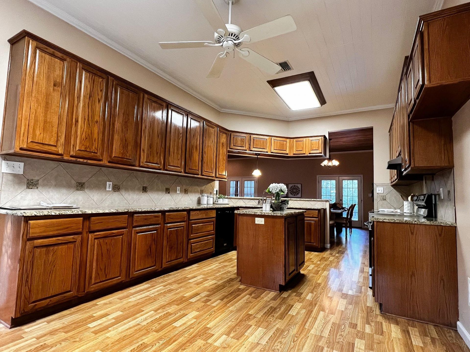 This beautiful custom home is nestled on 2.43 acres in one of the most sought-after locations in the heart of Fayette County, centrally located between Houston, Austin and San Antonio. Enjoy a quiet setting, elevated on the bluff, set back under towering oak trees with year-round patio enjoyment, daily deer and seasonal birds. Custom built in 1998 and well maintained by one owner, the home features enhanced steel and concrete foundation, #1 grade lumber, engineered trusses, 2x6 outer wall framing and added insulation for strength and longevity. The exterior is brick on all four sides with a 2018 composition roof and four large porches, including a wraparound front porch. Inside are approx. 4,091 sq. ft. of quality construction with multiple sitting areas, open living spaces and a huge family room with brick fireplace that opens to the dining room and kitchen. The kitchen was renovated 8?10 years ago with granite counters, undermount sink, center island and breakfast room with great windows. Stove and refrigerator can convey. The large master suite includes an ensuite bath with tub, separate shower, double sinks, walk-in closet with built-ins and an exterior door to a covered back porch overlooking the backyard. Four spacious guest bedrooms?two oversized?plus three guest bathrooms. An open loft area offers additional living/TV space. A large sunroom spans the back of the home with windows overlooking the yard. The oversized laundry room includes a utility sink, closet, half bath and access to the side porch and 598 sq. ft. garage with opener and extra oven. Outside is a circular drive with two entrances from Panorama Road, outdoor sink and faucets, and a 1,680 sq. ft. metal building/shop with concrete floor, 110/220 electric, abundant lighting and a partition ideal for RV or boat storage. All on a beautiful, tree-shaded 2.43 acres just outside La Grange on highly coveted Panorama Road