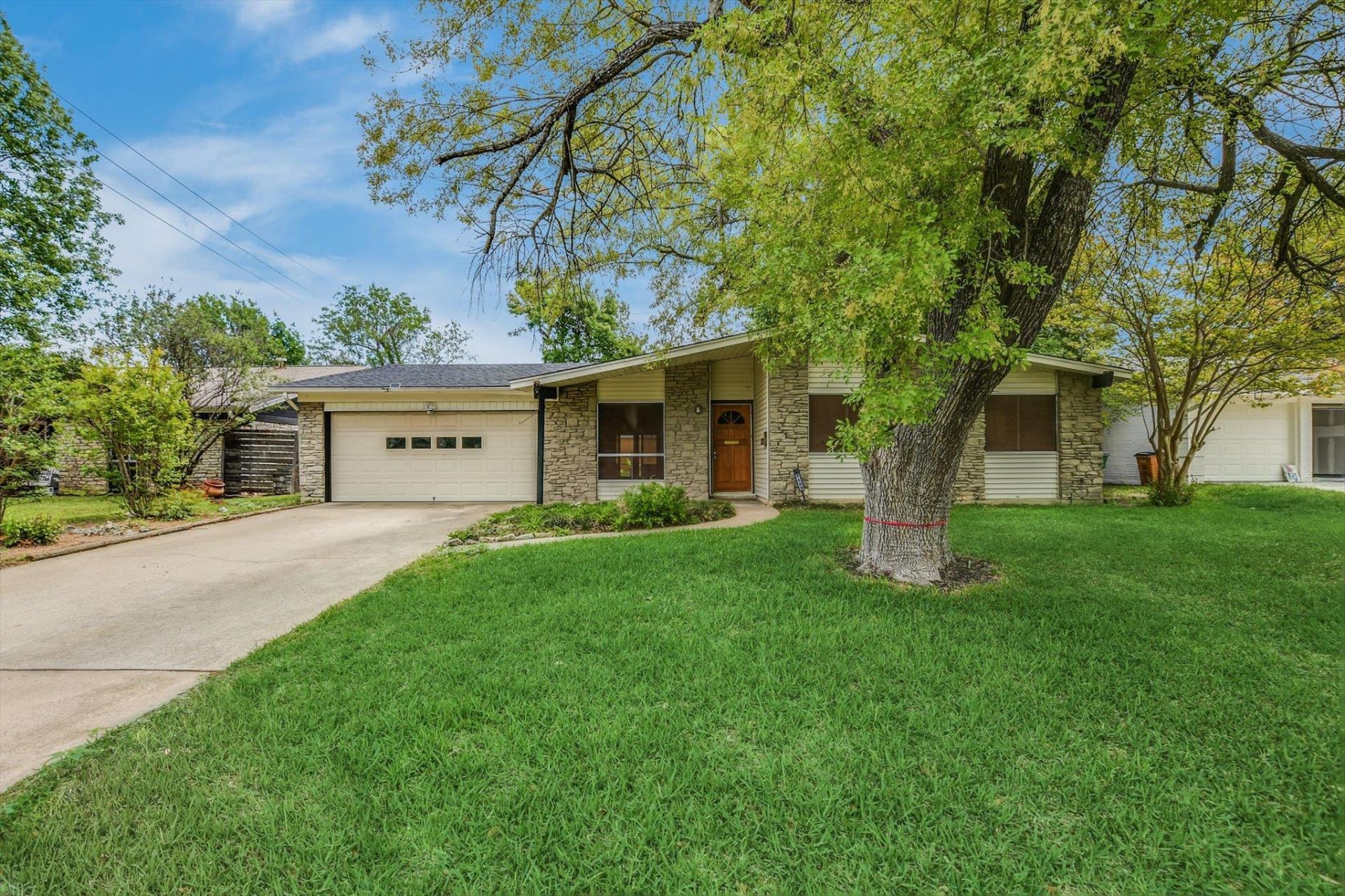 Discover this charming ranch-style home in Austin, built in 1964 and move-in ready for immediate comfort. Featuring a stylish kitchen with shaker cabinets and peninsula, a cozy living area with fireplace and wood accent wall, plus a sunroom, patio, and fenced backyard for added space and relaxation. Complete with a two-car garage and extra storage, this inviting home offers a well-rounded and comfortable living experience.