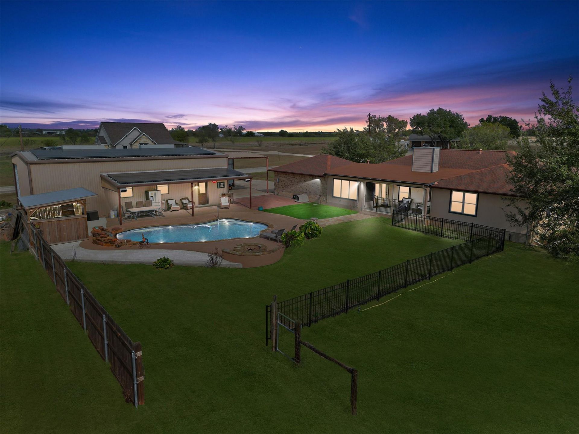 Spacious one story brick, ranch style home situated on an expansive 1.34 acre corner lot. This well maintained home features 3 bedrooms, 2 bathrooms and a comfortable and inviting living area. Enjoy outdoor living with custom in ground pool, beautifully landscaped backyard and full privacy fencing. Perfect space for relaxing and entertaining. The property also includes two versatile metal buildings ideal for storage, workshops or hobbies. Offering plenty of space, privacy and convenience, all while remaining close to local amenities.