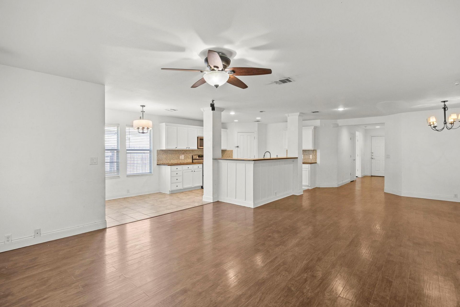 Incredible layout with new wood floors and open floor plan in a family-friendly neighborhood close to great schools and tons of new restaurants, retail shops, Costco, and HEB. A large kitchen with breakfast area and bar seating opens up to the living room. A second dining area can be used as a second living, play room, or office area. The main bedroom looks out to the back yard and has its own en suite bathroom with separate tub and shower, and dual vanities. A new roof, new HVAC, and new water heater will help reduce utility bills throughout the year. No carpets in the home.
