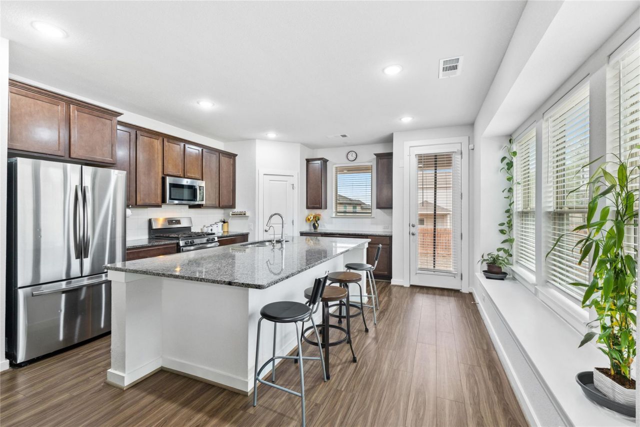 If you're looking for a home with ample space to live, work, and play then you have arrived at the right place! This 4 bedroom, 2.5 bathroom Highland Homes house also boasts both a dedicated flex room (possible office space) on the first level and a spacious 400 sq. ft. game room on the second. Here you will enjoy a number of upgrades that you just won't find in neighboring homes: luxury vinyl plank flooring throughout the main area, a water softener loop, an adorable built-in window seat in the kitchen, a tankless water heater, and GE appliances top the list of features that put this home a step above the rest. Further, this home features technology conveniences that are rarely offered in the local new construction homes including: My Q smart garage access, smart phone programmable irrigation controller, and Ring alarm security kit installed and ready for your activation. Located on Lake Travis, this Hill Country community has 5 miles of hike and bike trails, a private boat launch, 1 mile of private beach access, and an infinity pool overlooking Lake Travis, not to mention, a volleyball court and community pavilion! Residents enjoy access to these incredible amenities and a scenic lakeside lifestyle surrounded by natural beauty.