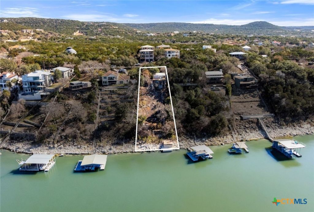 This deep-water Lake Travis property in Volente offers main-body waterfront, incredible lake views, and one of the best values currently available at its price point. With deep-water frontage, the property is well positioned for a future dock while already providing shoreline access. Elevated above the lake, the home captures sweeping lake views and year-round usability. The home will convey with newly purchased furnishings, allowing buyers to enjoy the property immediately or update at their own pace. Well suited for use as a private lake house or a potential short-term rental with approval from Village of Volente. The floor plan includes three bedrooms and two and a half bathrooms, with an open main level featuring a spacious kitchen, dining area, multiple living spaces and access to two expansive decks that extend the living space outdoors. The upper-level bedroom enjoys stunning lake views, private deck access, and a dedicated bath and study. Located in a quiet waterfront neighborhood with a single point of entry, the setting feels private while remaining highly convenient?just 10 minutes to Four Points (620 & 2222) for shopping, dining, and entertainment, and approximately 30 minutes to downtown Austin. The property is zoned to highly rated schools, including Grandview Hills, Four Points Middle, and Vandegrift High School, and is close to local favorites such as Volente Beach Club, Beachside Billys, Shack 512, Stiechen Park, and a nearby fire station. Offering deep water, main-lake access, panoramic views, and immediate usability, this property stands out as a rare opportunity on Lake Travis?priced at lot value and ready to enjoy from day one.