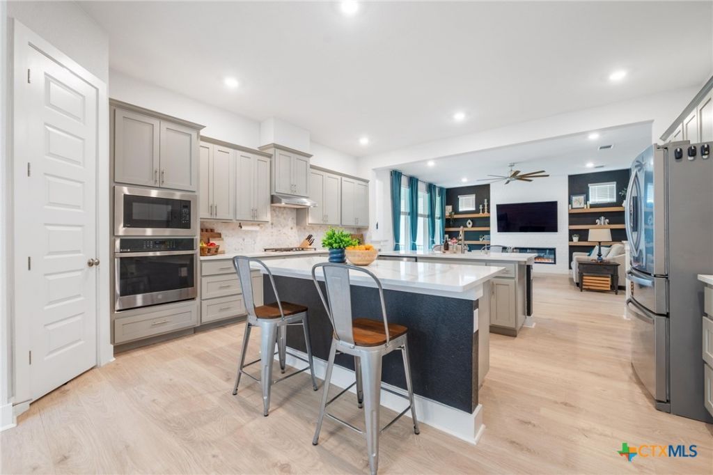 Where Life Feels Bigger and Beautifully Lived Tucked at the end of a quiet culdesac in Leanders award winning Bryson community, this stunning 5 bedroom, 4.5 bathroom home offers 3,064 square feet of intentional design, comfort, and effortless style. The showpiece is the rare double island kitchen, creating two natural gathering spaces for holidays, homework, charcuterie nights, or lingering Sunday mornings with coffee and conversation. Abundant cabinetry, generous prep space, and seamless flow into the living and dining areas make entertaining feel easy and everyday living feel elevated. The main level blends luxury and flexibility with a serene primary suite featuring a spa inspired bath, dual vanities, soaking tub, walk in shower, and a spacious walk in closet. A private secondary bedroom with its own ensuite is ideal for guests, a home office, or multigenerational living, offering privacy without sacrificing connection. Upstairs, a spacious game room becomes the hub for movie marathons, game day celebrations, or study sessions. Oversized secondary bedrooms with walk in closets provide comfort and room to grow, including one with a private ensuite perfect for teens or long term visitors who appreciate their own retreat. Step outside to a backyard designed for easy living. Maintenance free turf keeps it green year round, while the covered patio invites outdoor dining, relaxed evenings, and weekend gatherings with friends. Life in Bryson means more than beautiful homes. Enjoy a full time activity director, resort style amenities, scenic trails, parks, year round events, and a dog park just steps away. Located near St. Davids Hospital, Northline, Cap Metro rail and bus lines, top rated Leander ISD schools, plus endless shopping and dining, this home offers the ideal balance of tranquility and accessibility. Beautifully maintained and thoughtfully designed, this Bryson gem is more than a home. It is where memories are made and the next chapter begins.